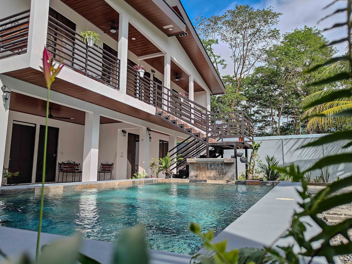 Oasis élégante de 2 chambres avec piscine, climatisation, près des plages d'Uvita