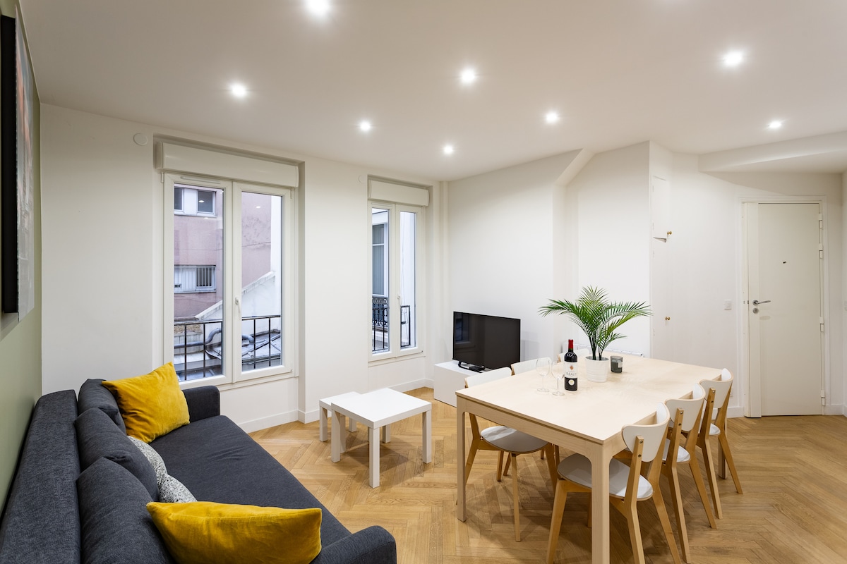 Appartement 2 pièces de charme, refait à neuf en avril 2019, accueillant, douillet, et typiquement parisien ! Idéalement situé dans Paris, très central, et 5 lignes de métro juste à côté (lignes 3, 5, 8, 9, 11). Quartier très branché et joli, nombreux restaurants, cafés, boutiques et concept-stores de qualité juste à côté, tout en restant calme la nuit. Canal Saint Martin à 200m.