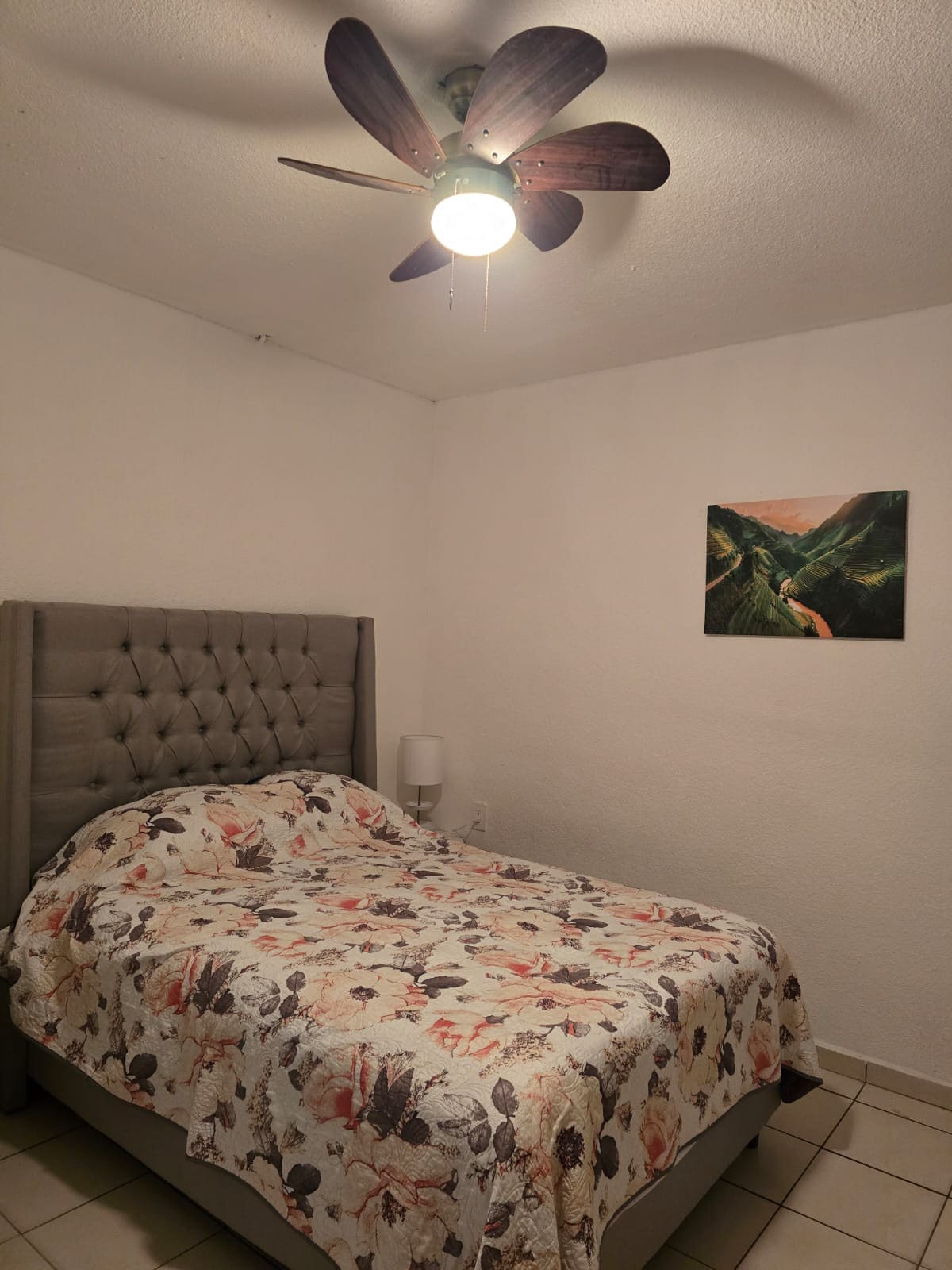 « Notre suite spacieuse offre un espace confortable et traditionnel, équipé de toutes les commodités nécessaires pour les professionnels et les voyageurs. Profitez d'une atmosphère agréable, calme et fonctionnelle, conçue pour offrir un maximum de confort pendant votre séjour. » * Chambre avec lit double, équipée de linge de lit. * Table de chevet avec lampe. * Eau en bouteille polie. * Grand placard avec portes coulissantes. Lampe décorative au plafond. Appartement en tuiles et mur texturé.