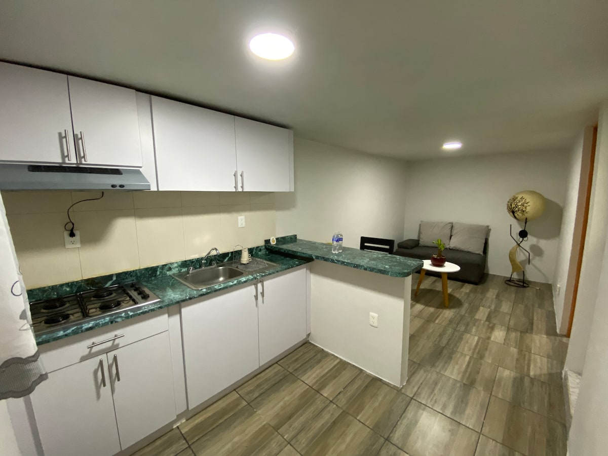 Séjournez dans un nouvel appartement, décoration de style contemporain. Il est situé à moins de 3 minutes de l'aéroport de Mexico, 15 minutes du forum sol et du palais des sports, 25 minutes du centre historique, idéal pour les voyageurs de correspondance, de travail, de repos ou de vacances. Cuisine équipée d'ustensiles prêts à préparer les aliments, ainsi que des endroits à proximité où vous pouvez commander ou manger sur place. Nous avons des matelas idéaux pour assurer un repos réparateur.