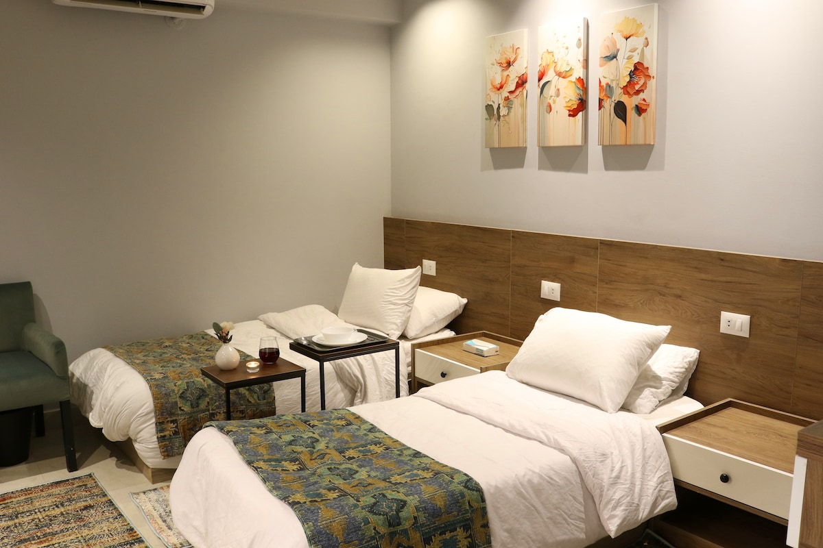 Profitez d'une expérience élégante dans ce logement central. En quelques minutes à pied, vous trouverez la place centrale de la ville d'El Hosary, dans la zone la plus élevée, une suite entièrement chargée avec un lit jumeau ou un lit queen size, une cuisine, un coin salon et un espace extérieur. Les marchés et restaurants sont à quelques minutes à pied. Les transports en commun sont accessibles à pied depuis notre logement. Les grands centres d'achats sont à quelques minutes en voiture.
