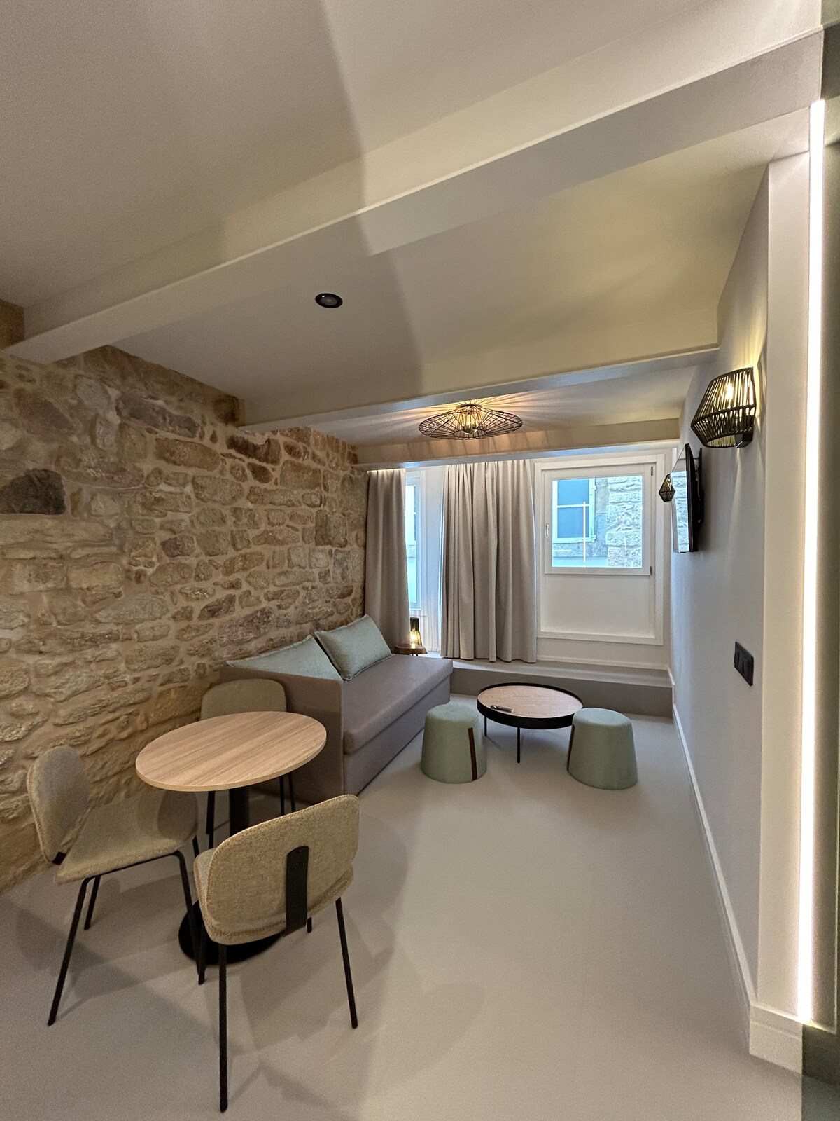 Bienvenue chez vous dans les Rías Baixas ! Nos appartements en pierre et bois allient traditionnel et moderne. Cuisine équipée (micro-ondes, cafetière, grille-pain et fer à repasser), salle d'eau avec douche, sèche-linge et produits de base. Vous dormirez comme un roc dans nos chambres confortables. Le salon dispose d'une cheminée pour des nuits fraîches et dans l'espace détente avec jacuzzi, vous pourrez vous détendre. Venez profiter de l'essence galicienne authentique et oubliez le stress !