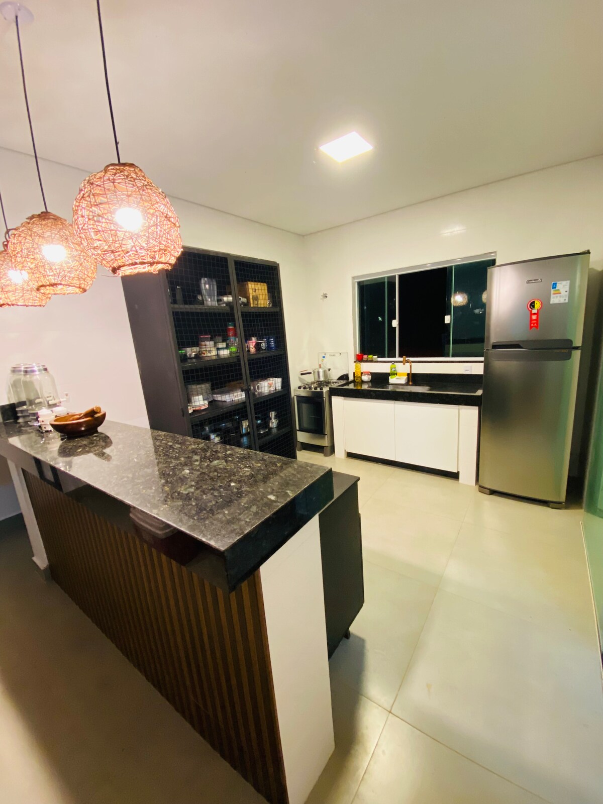 Détendez-vous à @casa_vista_do_encanto_corumba4, située dans une copropriété fermée. Vue panoramique sur le lac Corumbá IV, à Alexânia-GO. À seulement 10 km de la route de terre. L'espace dispose d'une pelouse, d'un barbecue, d'une piscine chauffée par le soleil. Idéal pour le repos et les loisirs complets en famille et entre amis ! Il dispose d'une connexion Wi-Fi! Il y a 3 chambres avec air conditionné, 2 suites, un grand salon, une salle de bain sociale, un espace gourmet, un balcon à l'ét supérieur, un espace à l'ageét inférieur fermé dans le blindex.