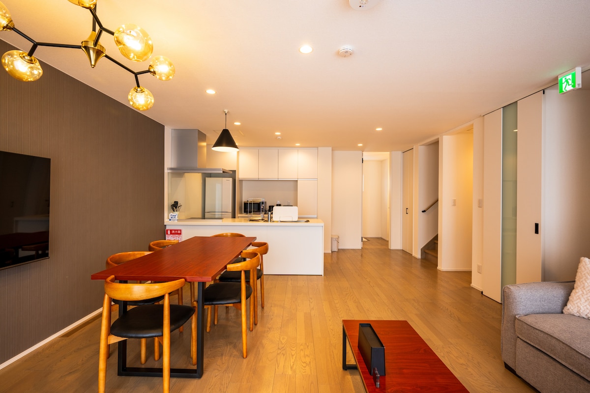 Notre nouvelle maison de ski est située dans la paisible région de Moiwa, à une courte distance de la poudriÚre Moiwa et Annupuri. Il offre un accÚs pratique à une variété de restaurants et de bars locaux charmants, tout en conservant un sentiment de retraite tranquille. La maison dispose d'un aménagement ouvert et aéré, comprenant un salon spacieux, une cuisine contemporaine, un coin repas et 3 chambres confortables. Il allie praticité et touche d'élégance, sans oublier son bain extérieur unique pour terminer votre journée de ski.