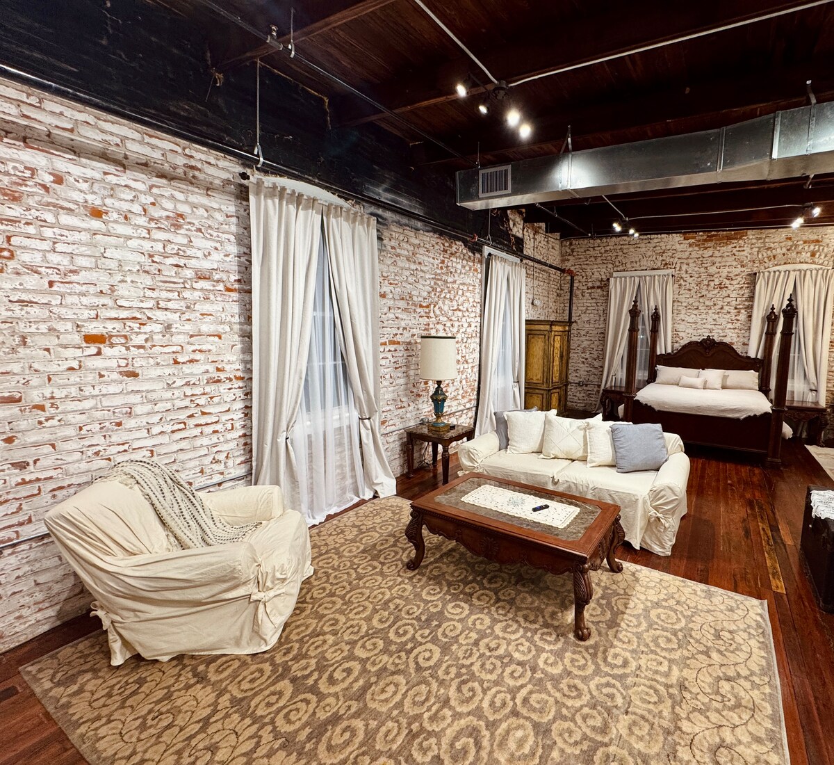 Ce studio magnifiquement restauré offre un espace de vie confortable, une cuisine moderne et une salle de bain luxueuse avec douche à l'italienne et baignoire à pattes de lion. Parfait pour les voyageurs en solo ou les petites familles. Le Kinberger Building dispose également d'un café pittoresque de style Nouvelle-Orléans au bas de l'immeuble, ainsi que d'un superbe espace de vente. Avec les écluses historiques de Plaquemine également à seulement 5 minutes à pied, votre séjour sera agréable et sans stress.