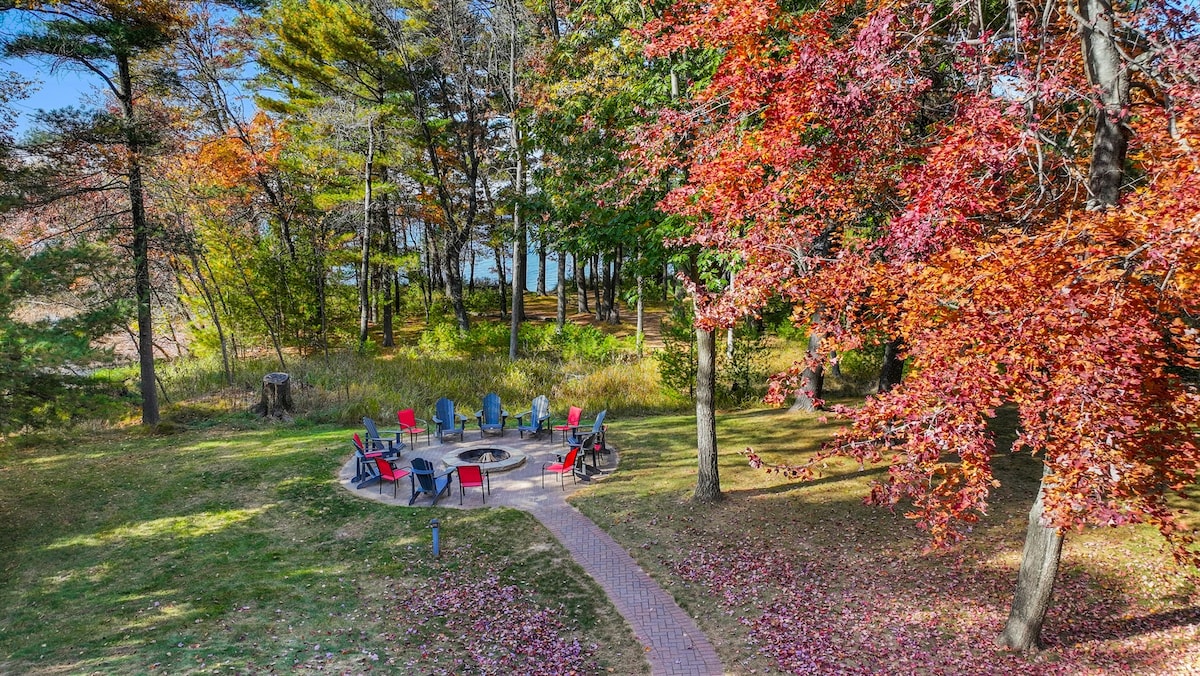 Visitez la région de Wisconsin Dells et détendez-vous dans un chalet inspiré de la nature, avec une partie avant et une partie arrière en forme de chalet. Situé à 10 minutes du centre-ville de Wisconsin Dells, près de Fawn Lake. Cette maison unique est vraiment une œuvre d'art, conçue et décorée intentionnellement pour que les invités puissent en profiter et s'en inspirer. Dégustez votre café du matin sur la grande terrasse ou asseyez-vous autour du feu de camp tout en observant la faune et en planifiant vos aventures à Dells.