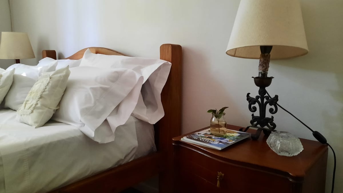 Profitez de la simplicité de cet hébergement calme et central. Vous disposez d'une salle de bain privée avec réceptacle. Cuisine avec double four à gaz, four électrique, grille-pain électrique, évier pour laver la vaisselle. Climatisation froid chaud inverter. Sommier avec matelas à ressorts Deux tables de chevet et une commode avec tiroirs. Vaisselle complète, assiettes, verres, couverts, tasses, casserole. Draps et serviettes. Papier toilette, savon et shampoing. Détergent et articles de nettoyage.