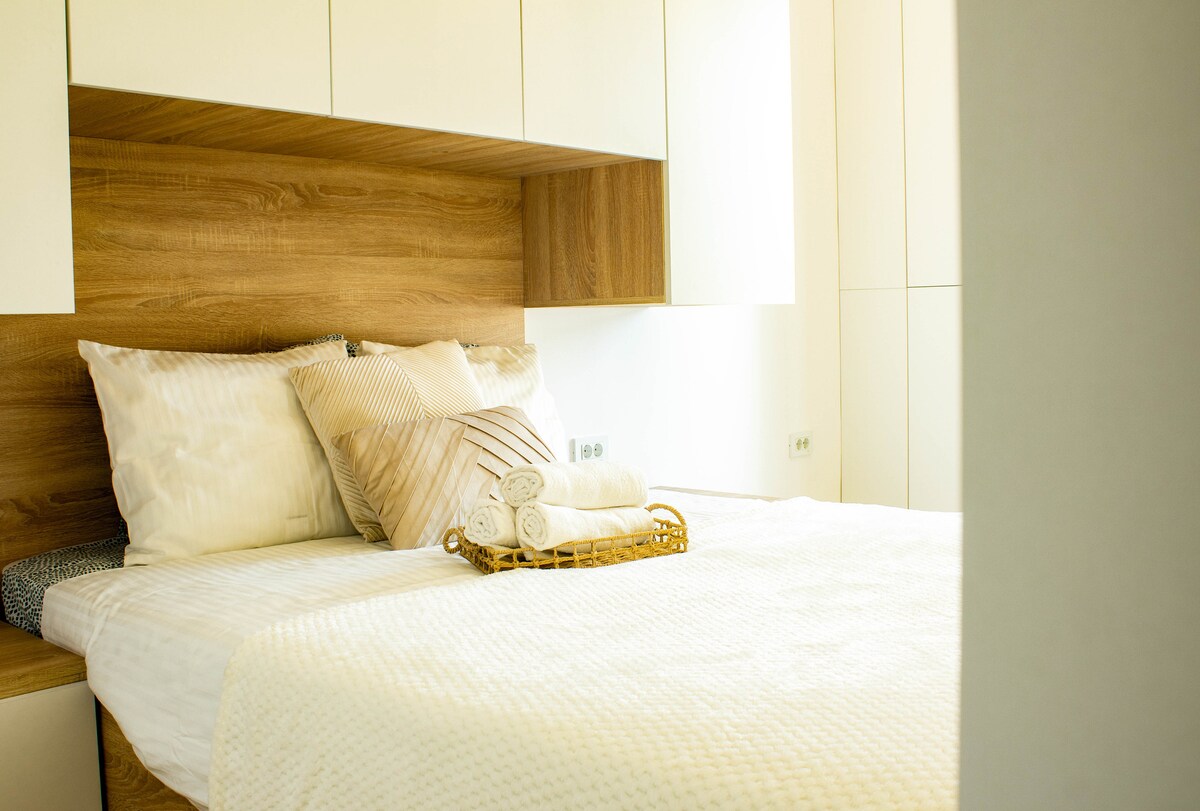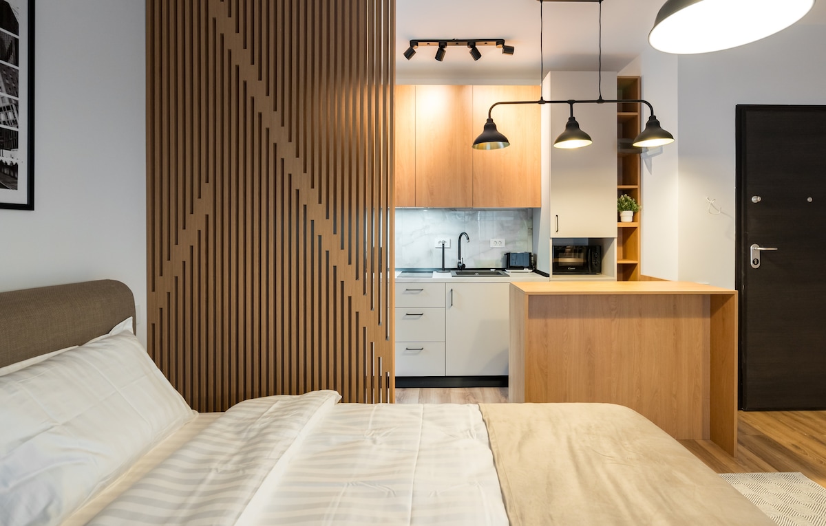 Un appartement moderne et lumineux, situé au centre, parfait pour des escapades en ville ou des séjours plus longs. Entièrement équipé, avec un lit confortable, une connexion Wi-Fi rapide, la climatisation et une cuisine privée. Arrivée facile, ambiance chaleureuse et accès rapide aux transports en commun, aux restaurants et aux attractions touristiques. Idéal pour les couples, les voyageurs en solo ou le télétravail.