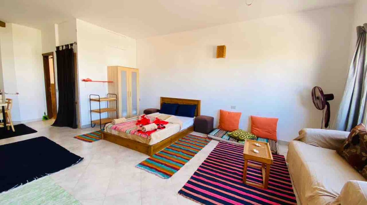 Faites simple dans cet endroit paisible et central. Proche des transports, des restaurants, des cafés et des divertissements. À 7 minutes à pied de la plage publique, à 15 minutes de l'aéroport en voiture et du vieux marché, et à 5 minutes de Naama Bay, où se trouvent des restaurants et des divertissements. Vous pouvez vous rendre à Soho Square en 10 minutes en voiture. En plus d'un supermarché dans le complexe, vous pouvez utiliser De plus, piscine, nous avons une sécurité sur place et un service de ménage également Nous vous attendons