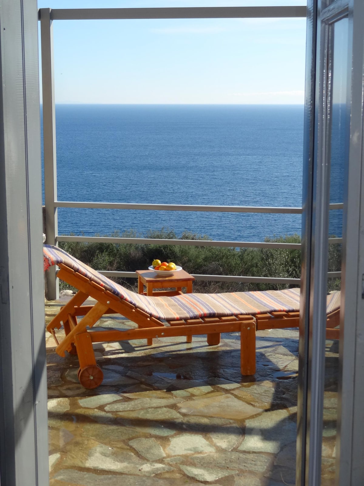 Située sur la colline de Koumaro,attenant à la ville néo-classique de Githio,ma maison de 3 niveaux est perchée sur une colline, ce qui lui donne une vue imprenable sur la ville en contrebas et le golfe Laconique dans son ensemble....Élégamment aménagé pour offrir à la fois confort et intimité et meublé et décoré avec goût,ma maison dispose de toutes les commodités modernes. Les terrasses extérieures et les jardins également situés à différents niveaux offrent aux visiteurs de nombreuses options pour profiter de la vue spectaculaire.