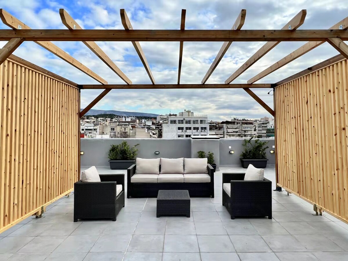 Bienvenue au Loft, une retraite unique de 25 m² avec une vue imprenable sur Athènes, l'Acropole et la colline de Lycabette. Profitez d'un design minimaliste, de grandes fenêtres et d'une terrasse privée de 60 m² avec jacuzzi parfait pour les couchers de soleil ou les bains de soleil sur les chaises longues. Parfait pour une escapade relaxante ou une base pour découvrir les sites touristiques d'Athènes. La station de métro est à 300 mètres.