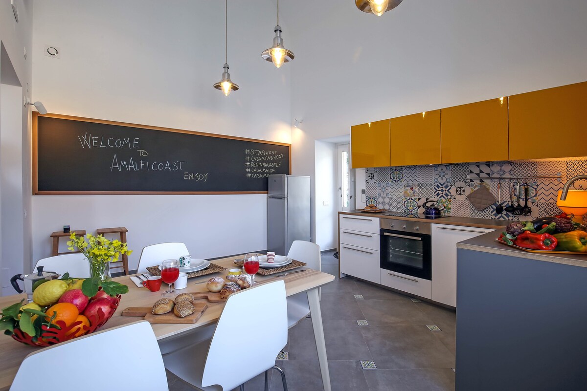 Casa Maior est un appartement raffiné récemment restauré et intégré avec des compléments architecturaux modernes. L'appartement est situé dans un château de rêve surplombant la mer sur le Cap entre Maiori et Minori. Avec la terrasse équipée donnant sur Maiori et la mer C'est parfait pour des vacances relaxantes à proximité des villages amalfitains. Une chambre double, le canapé-lit dans le séjour et un lit double dans la zone adjacente ouverte interconnectée avec le séjour le rendent parfait pour votre séjour jusqu'à 6 personnes