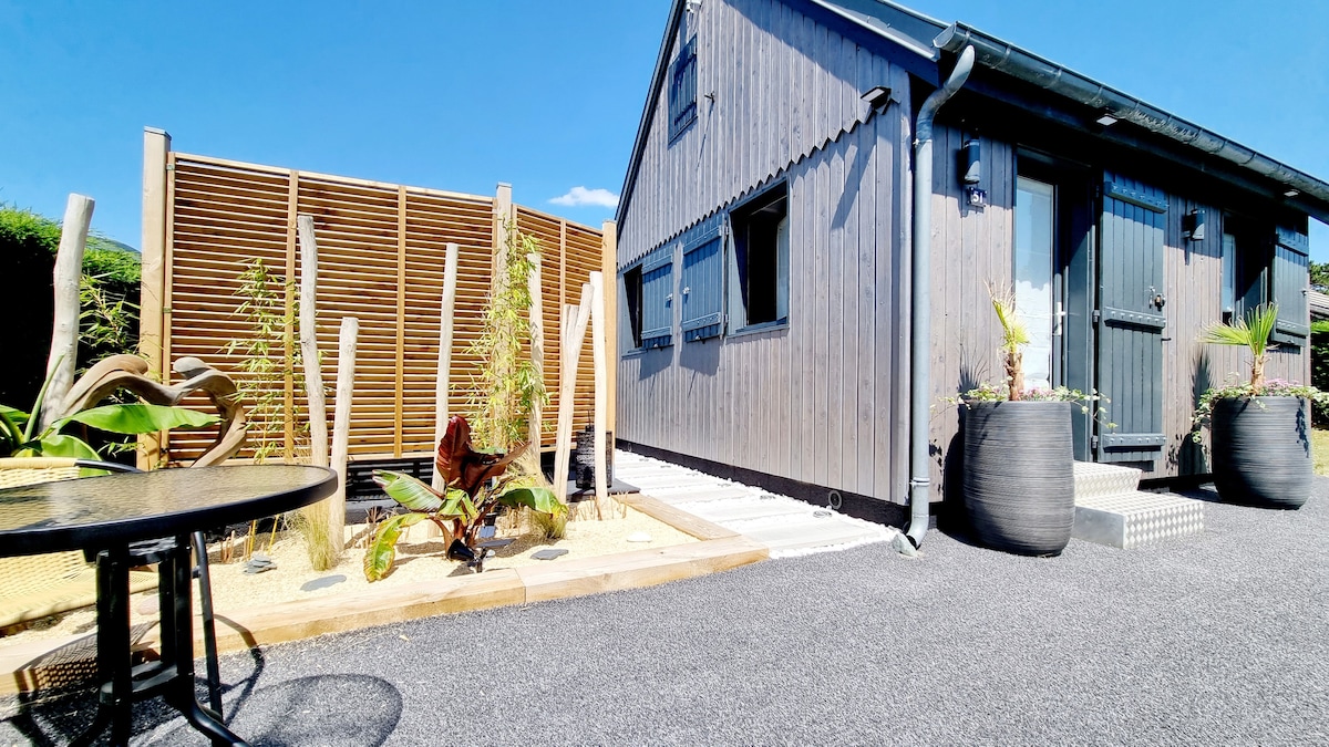 Détendez-vous dans ce chalet calme et élégant pourvu de son spa entièrement privé et en accès libre tout au long de votre séjour. Dans ce cadre naturel à deux pas de la mer les maîtres mots sont apaisement et relaxation. La plage n'est qu'à cinq petites minutes à pied et accessible par un sentier sauvage. Un paddle est disponibles en supplément. Cheque de caution demandé à l arrivée.(1000€) Suppléments draps/serviettes/peignoirs à 10€ par pers
