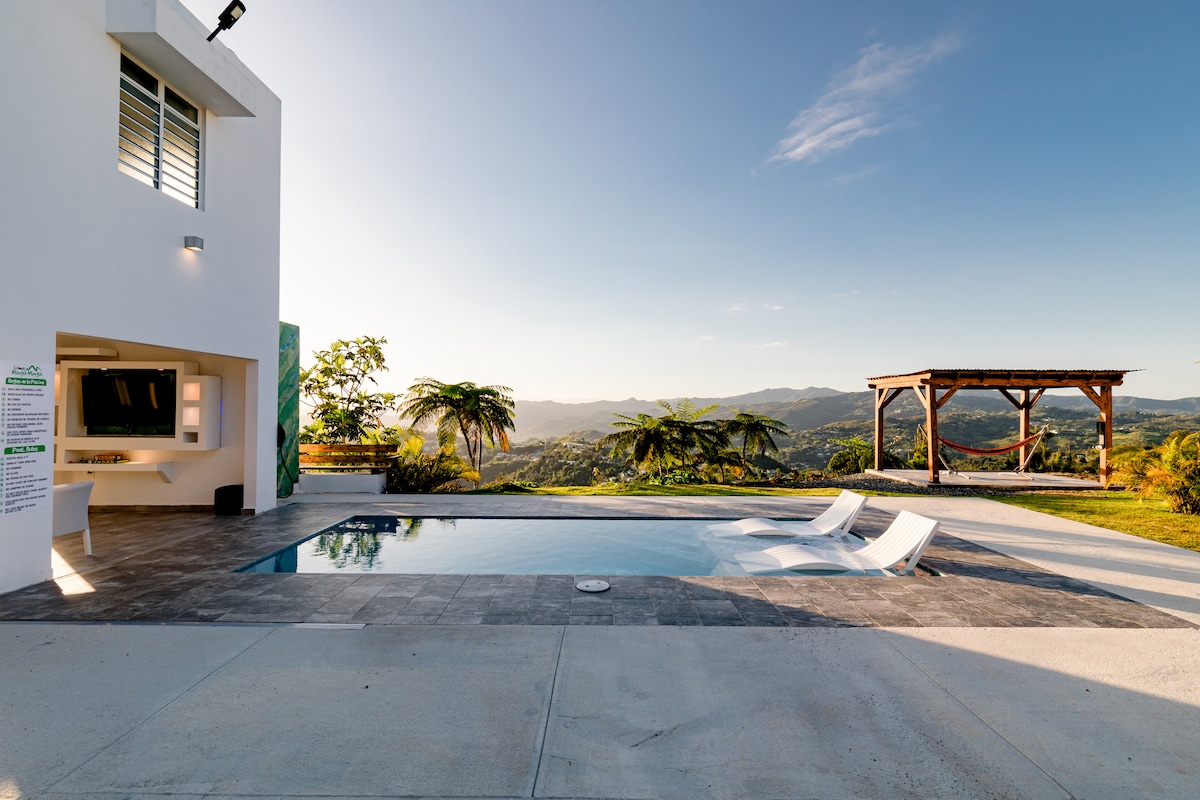 Mingui Mingui est cet endroit que je veux partager avec vous. Vous y trouverez et ressentirez la paix, l'amour, la joie, l'empathie... Cette belle et confortable propriété est située à environ 45 minutes de l'aéroport SJU. À proximité des restaurants, boulangeries, marchés, station-service, etc. À 15 minutes de la Plaza de Caguas. Elle dispose de panneaux solaires, d'un réservoir d'eau, d'une belle piscine, d'un billard, d'un barbecue, d'une connexion Wi-Fi, d'un appareil de karaoké, d'une cuisine extérieure et d'une belle vue sur la vallée. L'équilibre parfait entre campagne et ville.