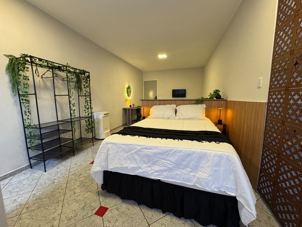 Profitez de ce logement parfait. Notre hébergement dispose d'un lit queen-size, d'un balcon avec vue, d'une cuisine équipée, d'un placard, d'une baignoire, d'Internet, d'une télévision, de la climatisation, idéal pour se détendre après une journée d'exploration de la ville. Situé dans un emplacement privilégié, vous serez à 9 km de Granja do Torto, 13 km de la gare routière de Plano Piloto, 3,5 km de Prainha do Lago Norte, 4,5 km de Shopping Iguatemi. Venez vivre une expérience inoubliable, où chaque détail a été pensé pour votre meilleure expérience.
