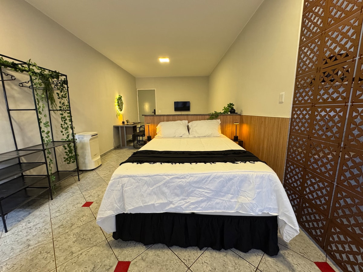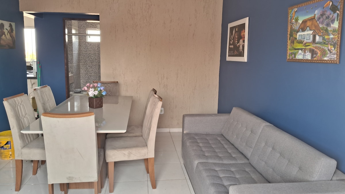 Bienvenue dans votre coin idéal à Águas Lindas ! Notre appartement d'une chambre est parfait pour ceux qui recherchent praticité, confort et un emplacement idéal. Situé dans le centre-ville, vous serez à distance de marche des pharmacies, des restaurants, des boulangeries et de tout ce dont vous avez besoin pour passer un séjour au calme. 🛏️ Le logement • Chambre spacieuse avec un lit double • Chambre confortable avec sofa et télévision • ventilateur • Cuisine avec réfrigérateur, cuisinière, micro-ondes et ustensiles de base • Salle de bain • Wi-Fi ;