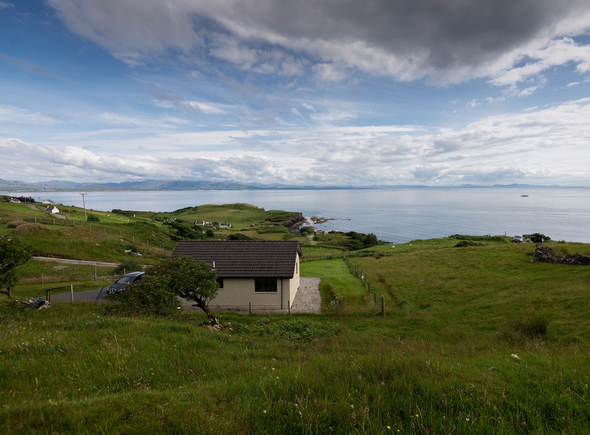 Cet endroit unique a un style qui lui est propre. Situé au sommet d'une colline avec une vue imprenable sur le bras de mer de Sleat, offrant une vue imprenable sur les îles d'Eigg et de Rum et au loin le point le plus à l'ouest de l'Écosse. Asseyez-vous et détendez-vous à l'extérieur sur la terrasse ou au coin du feu en profitant de la paix et de la tranquillité. Profitez de votre pause détente et installez-vous confortablement à l'intérieur avec le chauffage au sol et la lueur chaleureuse du feu de bois.