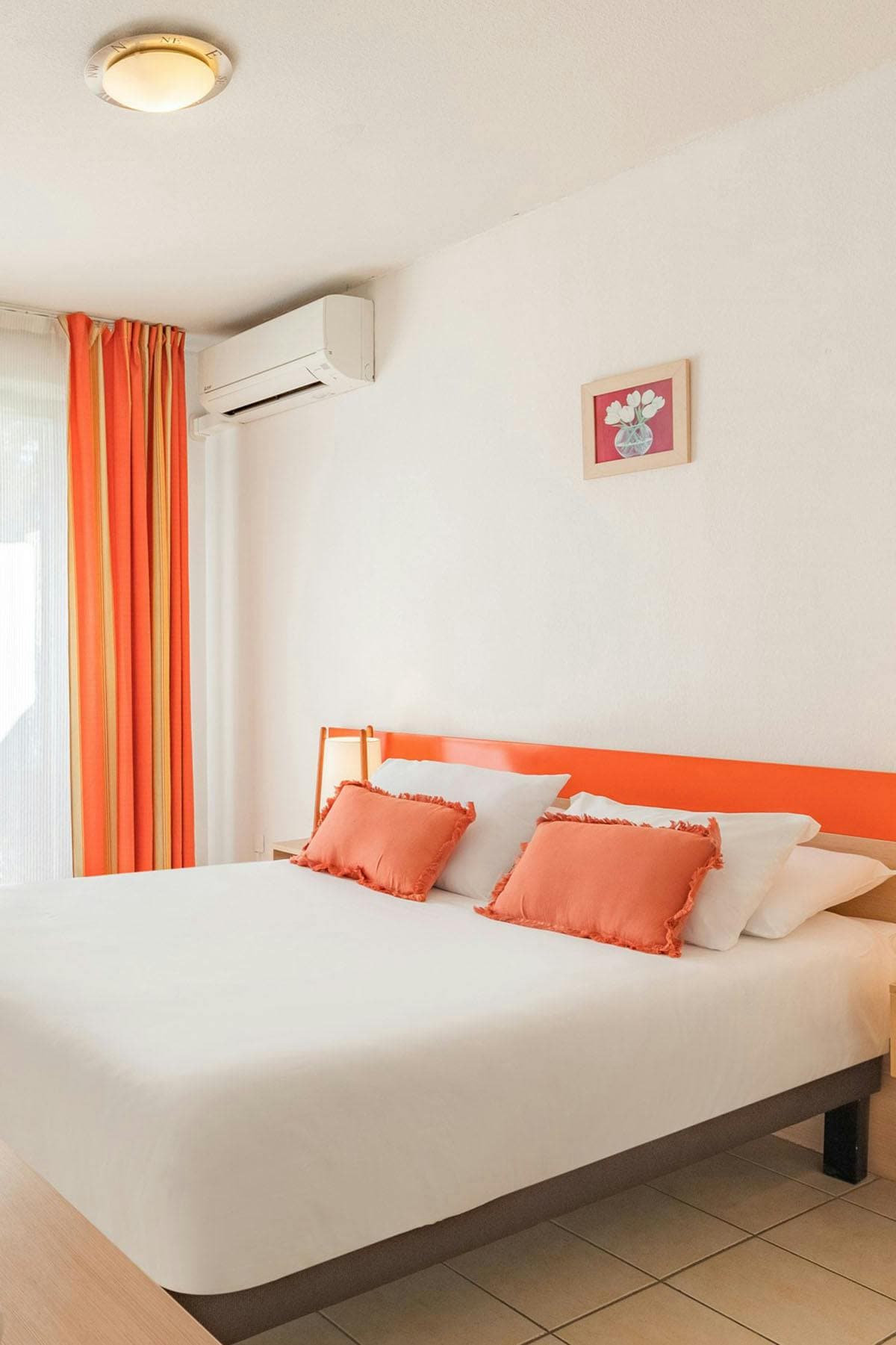 Nos studios doubles supérieurs agréables et confortables (20 m²) offrent un lit double ou un lit gigogne selon la configuration de l'appartement, des fenêtres insonorisées, des rideaux occultants, une télévision à écran plat et une terrasse. Vous apprécierez le coin cuisine entièrement équipé qui facilitera votre séjour. Vous apprécierez également l'espace de travail avec un téléphone et une connexion Internet sans fil.