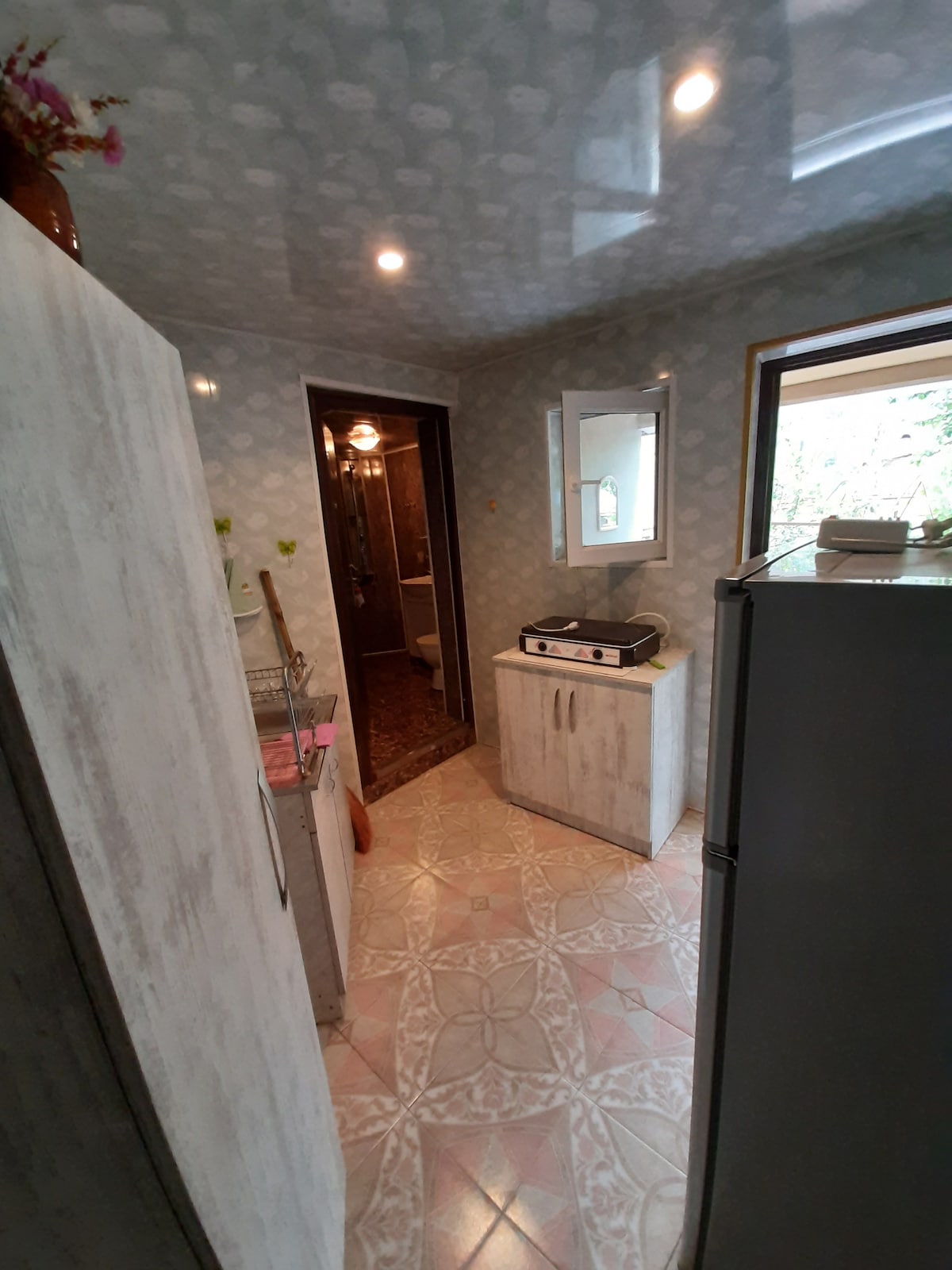 Confortable, avec tout le confort, avec un jardin et de belles vues dans le centre de BORJOMI. Belle nature, forêt de conifères, à 10 minutes du parc Borjomi. Il y a un jardin avec des fleurs dans la cour. Les lits sont très confortables et confortables, la chambre dispose d'une cuisine, douche et toilettes. La maison dispose d'une cuisinière, réfrigérateur, lave-linge, fer à repasser, Internet Wifi sans fil. Il est possible de faire frire des brochettes sur un barbecue
