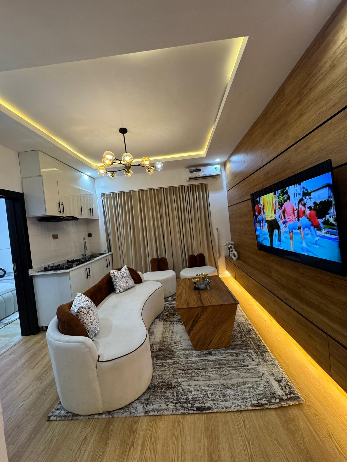 Welcome to this beautiful designed one bedroom apartment, located in Toyin street ikeja, close to everywhere. it’s a fully furnished with modern and sophisticated amenities to offer you a seamless living experience, this apartment combines elegance with functionality, thoughtfully decorated with sleek furnitures, 65inches Samsung QLED TV and contemporary art, ideal for relaxing and entertaining. A spacious sanctuary with comfortable bed, fully equipped kitchen with state-of-the-art appliances.