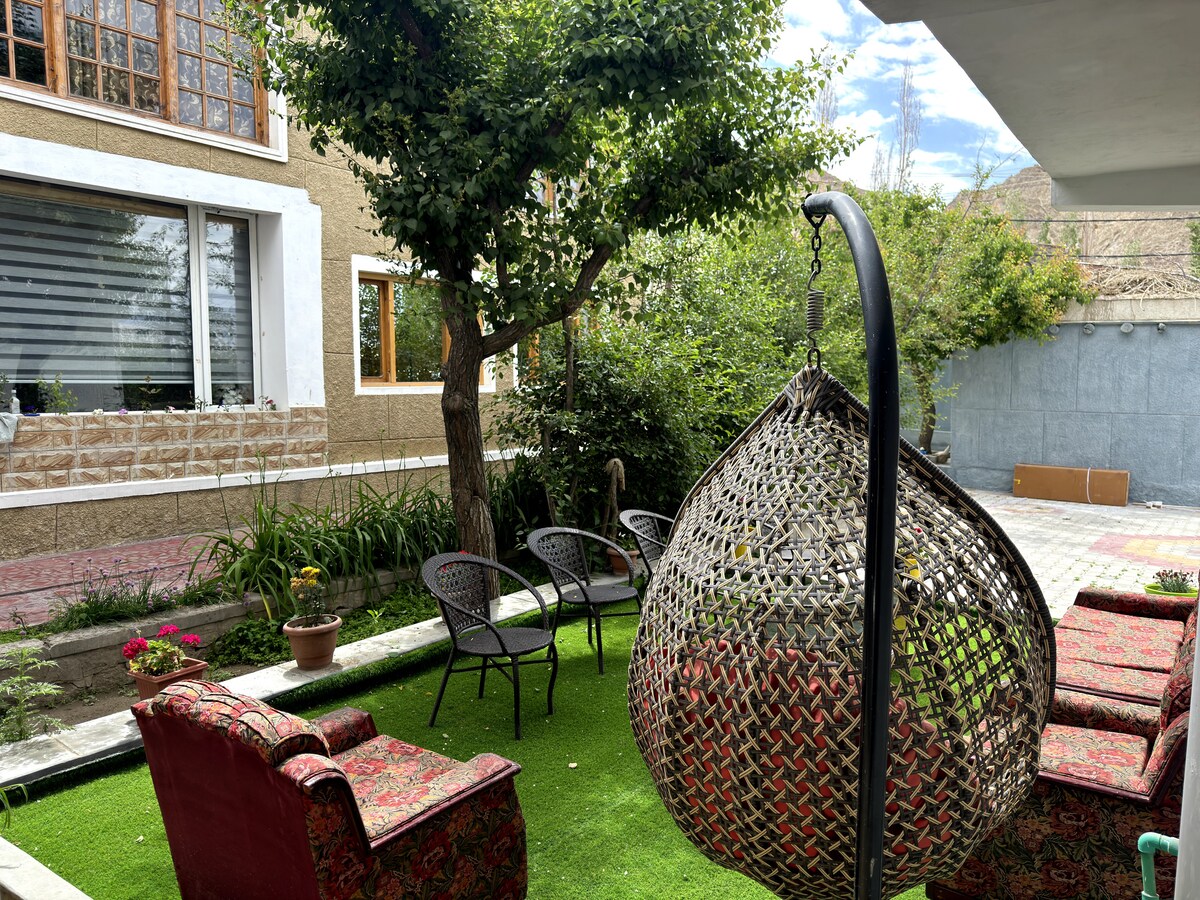 Le bâtiment dans lequel se trouve la maison d'accueil a été construit dans le style traditionnel ladakhi, les sols sont en bois et le plafond est également fait dans le style traditionnel ladakhi, avec des troncs d'arbres. Certaines des chambres ont la meilleure vue sur les montagnes, en particulier le glacier Stok (6 150 mètres d'altitude). À l'extérieur du bâtiment, il y a une ferme dans laquelle nous cultivons des épinards verts, du bok choy, du brocoli, du chou-fleur, du chou, des pommes de terre, des tomates, etc. Nous pratiquons l'agriculture biologique depuis 2009.
