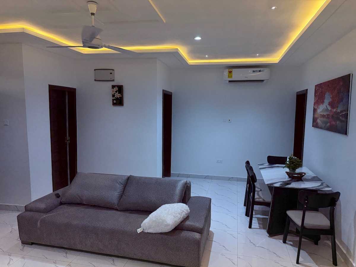Bring the whole family or friends to this great apartment with lots of room for fun and no worries with power interruptions as there’s a 24hr solar system as a backup. Relax in the calm, stylish apartment with fresh breeze from the Aburi mountain with free parking lot, garden, 24/7 security service and swift customer service. The residence have two bed ,two bathroom, spacious hall and dinning, and kitchen with all necessary amenities. It’s located in the Ga East Municipal at Abokobi.