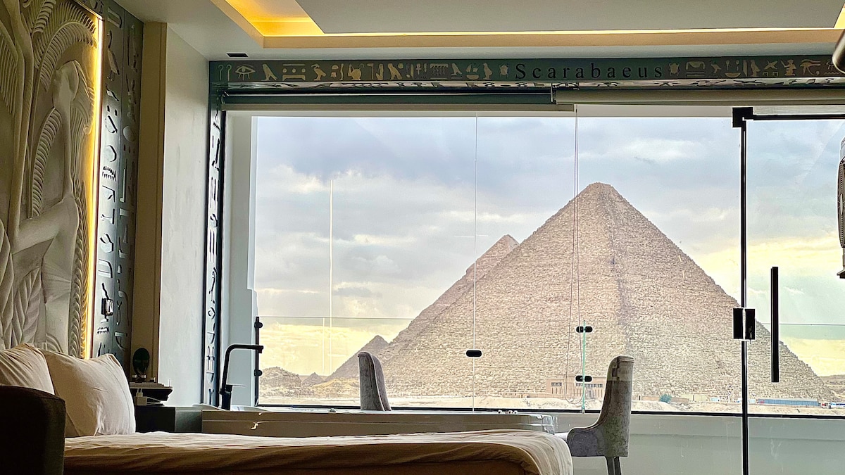 Suite Scarbaeus avec vue sur les pyramides, jacuzzi et balcon