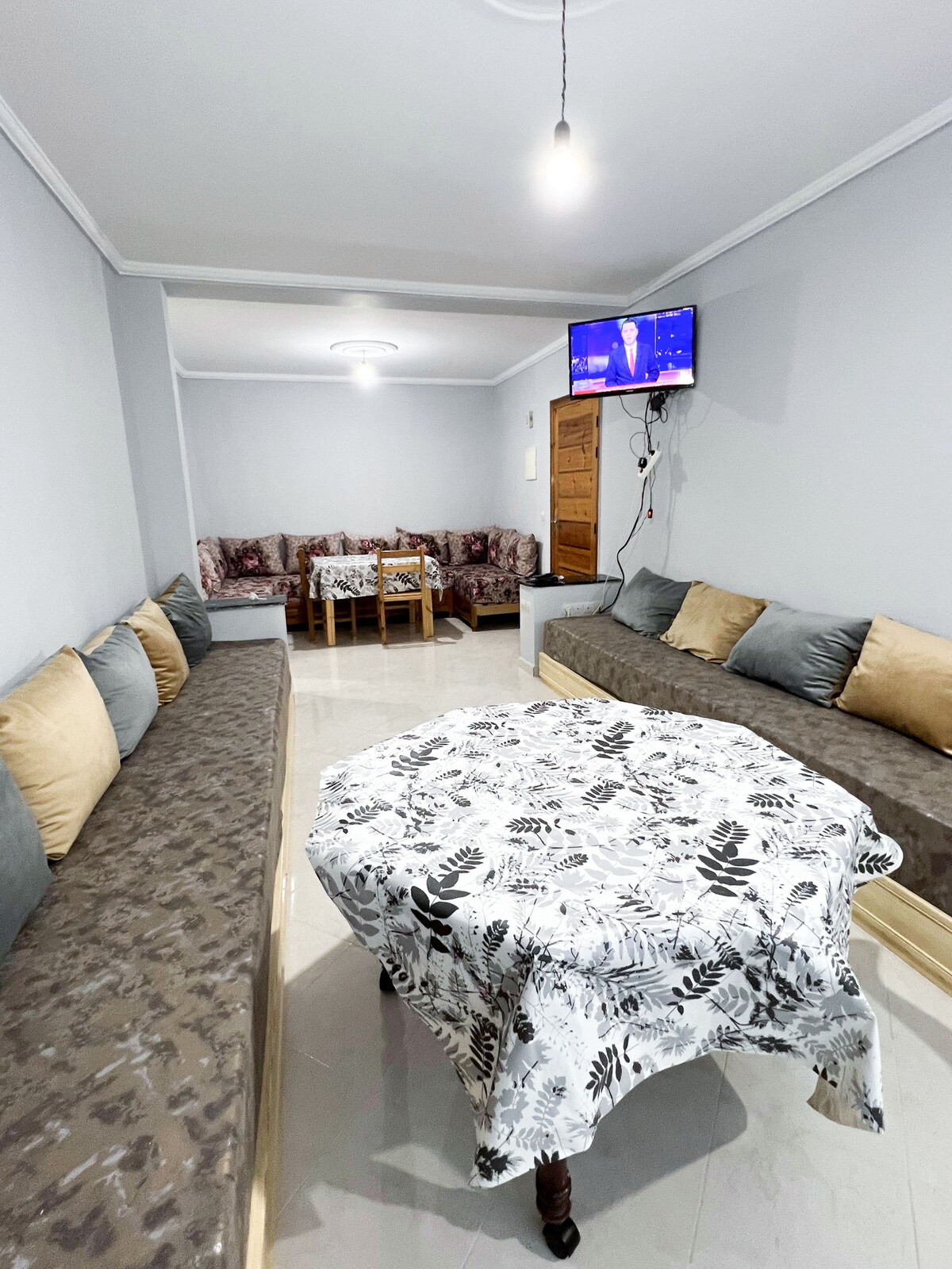 Bienvenue à Al Hoceima. Appartement au premier étage, avec la possibilité de se garer à la porte dans un espace sécurisé, à proximité de la corniche avec vue panoramique sur la ville. ON N'ACCEPTE PAS DES COUPLES NON MARIÉS SANS JAWJIA (ACTE)