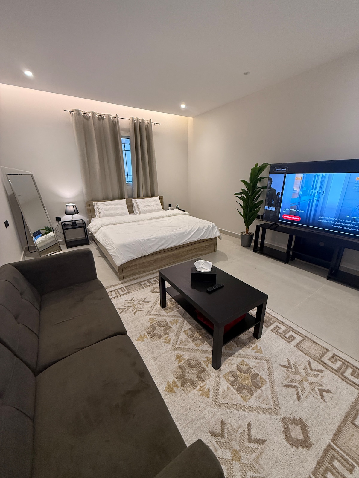 Unique avec votre choix de cet espace moderne et passez les plus belles nuits remplies de confort et de tranquillité. Il est proche de la Mosquée du Prophète et de la Mosquée Quba (La mosquée du prophète est à 5 minutes en voiture et 20 minutes à pied, et de la mosquée Quba 3 min en voiture et 7 minutes à pied) Le logement dispose de tout le confort d'un lit double et d'un canapé de détente selon les disponibilités - Grand écran intelligent de 58 pouces - L'écran intelligent dispose de toutes les applications - Bouillillie électrique ; • Machine à café, micro-ondes - La résidence dispose d'une connexion Wi-Fi gratuite. - Ascenseur disponible - Parking gratuit