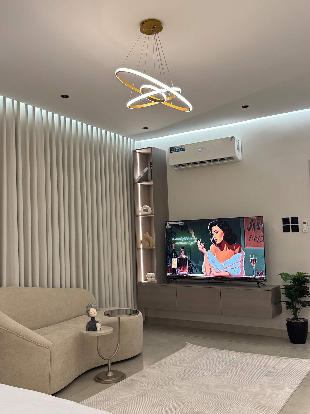 Studio élégant au design moderne et aux couleurs chaleureuses ✨ Il offre une atmosphère apaisante pour le repos et la détente, en toute intimité, et propose une arrivée autonome facile. Emplacement privilégié dans le quartier d’Al-Hamra, à proximité des cafés, des restaurants, du parc King Abdullah et du centre commercial Al-Ahsa 🤍 Un séjour confortable… en voyage d’affaires ou de loisirs.🌿