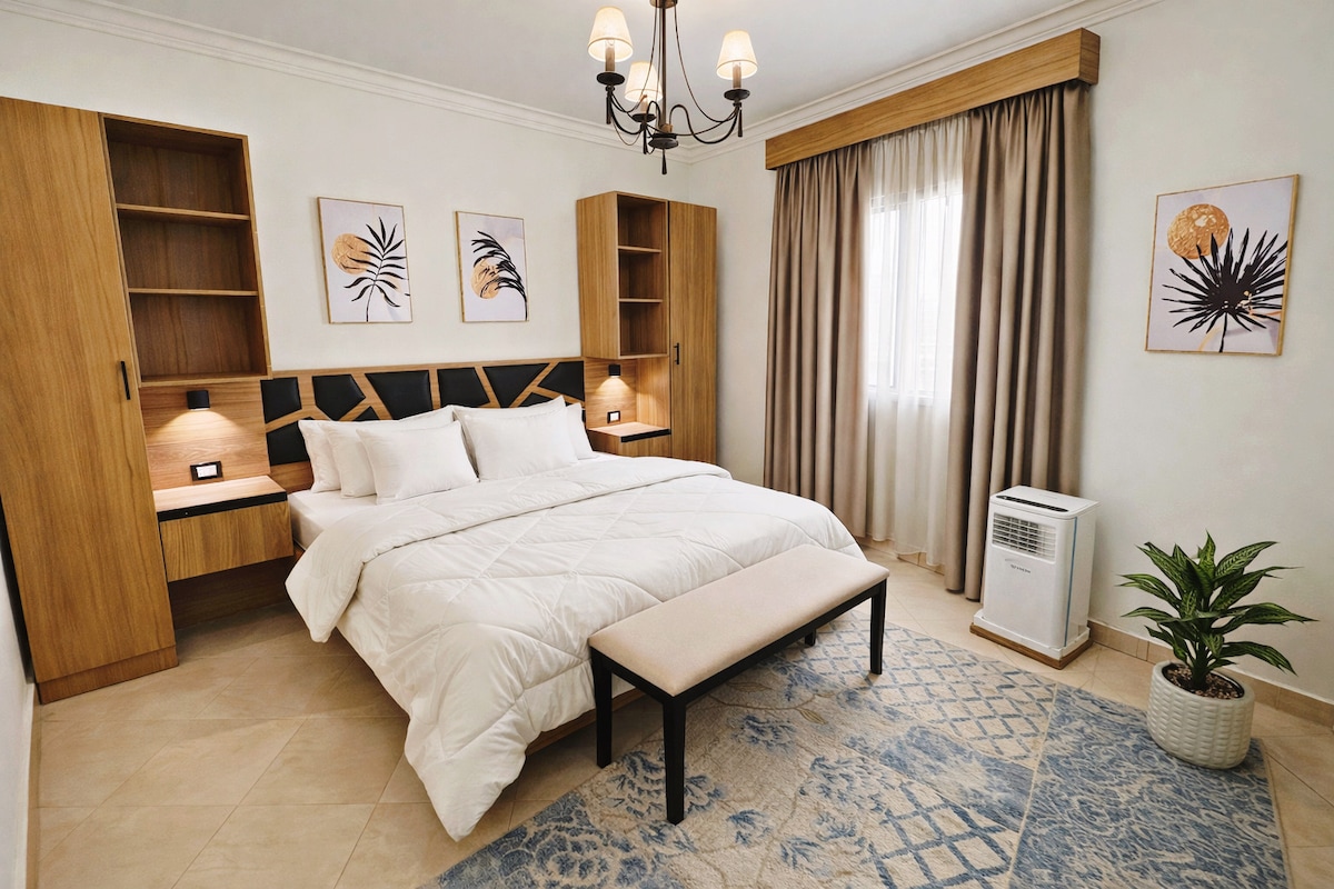 Bienvenue à Raha Stays, un appartement au rez-de-chaussée conçu avec soin, à quelques minutes de l'aéroport du Caire. Dotée de deux lits queen size élégants, d'une connexion wifi haut débit, d'une salle de sport privée et d'une salle de jeux élégante, cette retraite sereine allie confort et sophistication. Idéal pour les affaires et les loisirs, il offre une expérience fluide et élevée au cœur de la ville.