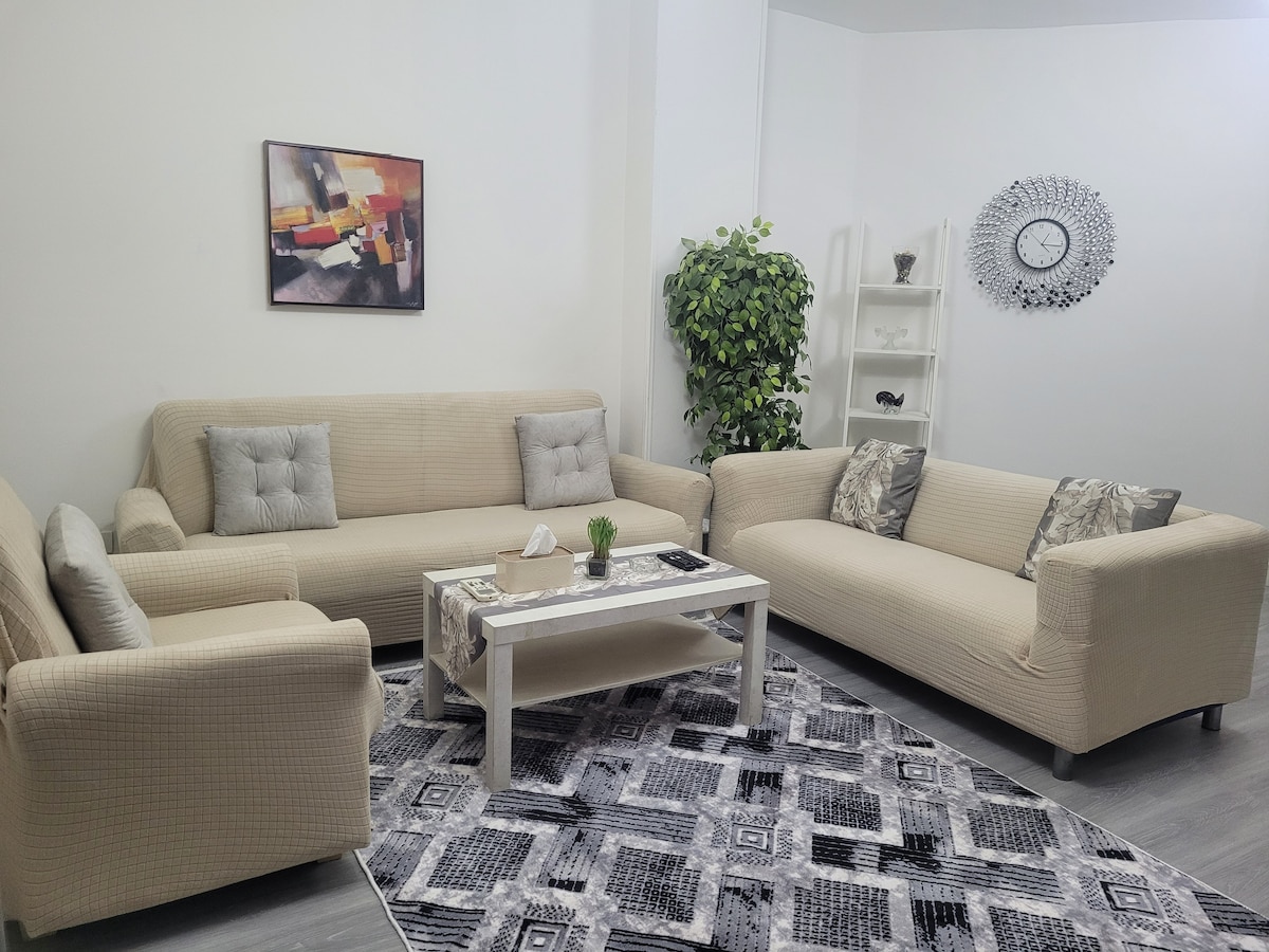 Appartement de 3 chambres entièrement climatisé À 1 km du tribunal est d'El Rehab et de l'aire de restauration du marché oriental. Détendez-vous dans ce logement calme et élégant. >>>> > Aucune visite autorisée >>>> DÉSOLÉ MAIS NON DISPONIBLE POUR LES ARABES ET LES ÉGYPTIENS, NI POUR LES GROUPES MIXTES, NI POUR LES COUPLES NON MARIÉS AVEC DES PAPIERS DE MARIAGE CERTIFIÉS LOCAUX EN RAISON DE LA LOI ÉGYPTIENNE.