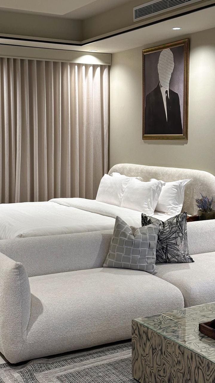 Profitez d'un séjour à l'hôtel unique avec un design moderne exceptionnel qui allie luxe et chaleur, avec une cuisine entièrement équipée, un lave-linge, une salle de bain élégante avec des équipements luxueux et un écran de 75 pouces en face d'un canapé qui se transforme en lit de cinéma. Dans le quartier huppé et animé d'Al-Nahda, près de la mer, de l'aéroport, de King Road, du centre commercial Radsy, de Benchmark, de City Walk et de tous les lieux spéciaux de la charmante ville de Djeddah 🏖️🗺️🌅
