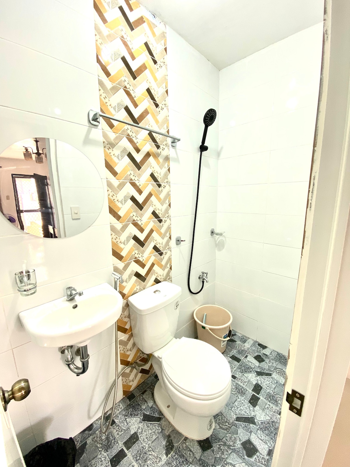 Détendez-vous avec toute la famille dans ce logement paisible. Une communauté fermée avec une sécurité 24h/24 pour votre sécurité. Une chambre principale climatisée avec salle de bain privative. Un salon climatisé et une chambre climatisée avec une salle de bain commune. Et des ustensiles de cuisine de base pour vos repas à préparer. Une maison à proximité des centres commerciaux, des hôpitaux et des marchés, à 3 minutes à pied de l'autoroute principale et à 10 minutes en voiture des principaux établissements. Une propriété qui vaut votre argent durement gagné.