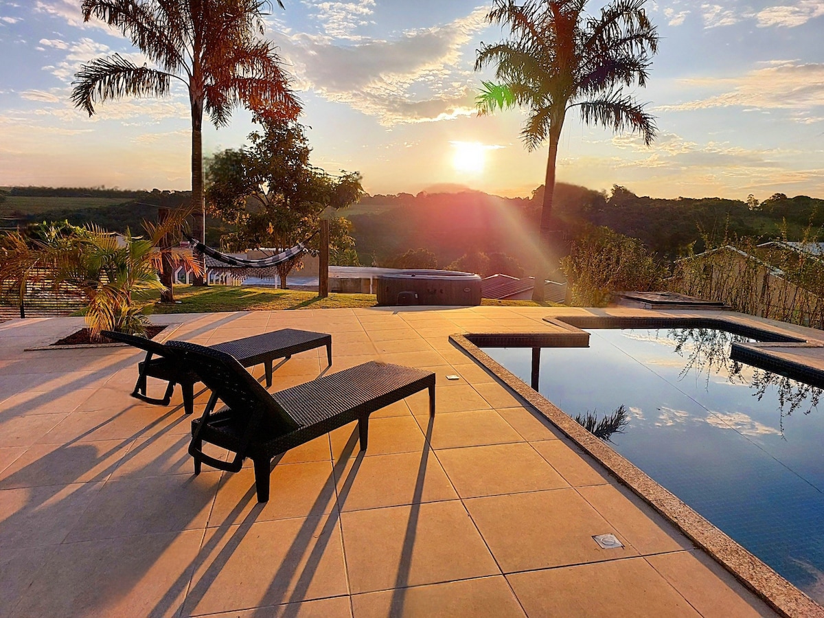 The property covers 5,000 sqm, with a pool near the barbecue area, sports court, and a complete game room (billiards, foosball, table tennis, video games, and card table). It offers mesh Wi-Fi with 600 Mbps fiber internet, satellite TV, a single-floor layout, flat terrain, a kid's playground, and numerous communal spaces, both indoors and outdoors! Located just 1 hour from São Paulo! The house is a mere 10-minute drive from the city center and the Skydiving and Ballooning Center.