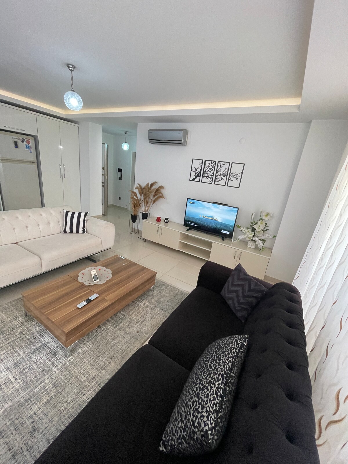 L'appartement est juste à côté de la plage de Kleopatra. Troisième bâtiment avant la plage. Et également à distance de marche de la ville. Vous pouvez vous rendre en ville en bus en 5 minutes. Il y a des bus toute la journée. Appartement neuf en rénovation au design scandinave. entièrement meublé. 3 climatiseurs. Internet illimité. Télévision Android (Netflix,youtube). il dispose d'un très grand balcon avec vue sur la mer et la montagne. traverser le bâtiment il y a une grande migros et apotheke. à distance de marche de la gare routière aussi. grand salon et cuisine séparée.elovator. otopark gratuit.