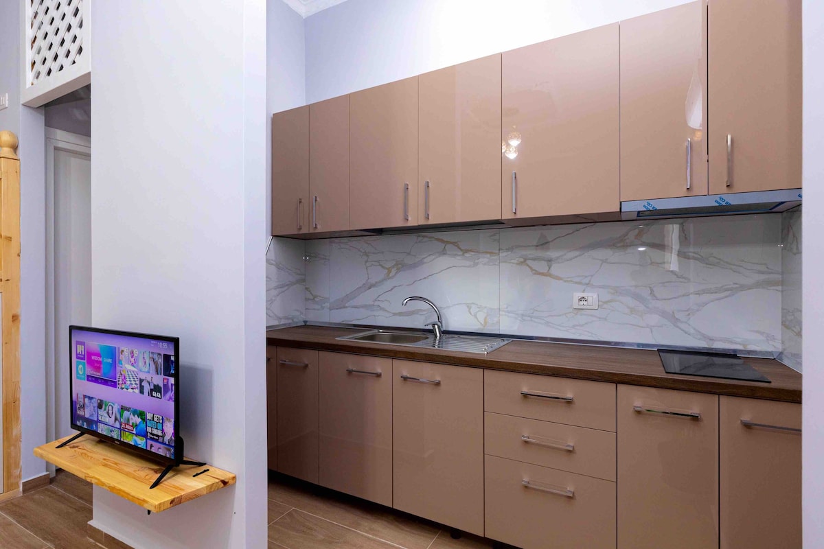 Bienvenue dans ce studio élégant et fraîchement rénové, situé à seulement 1 minute du centre-ville animé de Tirana ! Parfait pour les voyageurs en solo ou les couples, cet espace moderne allie confort, commodité et une touche de luxe. La chambre est située au premier étage de l'immeuble (rez-de-chaussée, premier étage) Que vous soyez en ville pour affaires ou loisirs, cet espace offre tout ce dont vous avez besoin pour que votre visite soit mémorable, tout en étant à quelques pas des restaurants, des magasins et des attractions.
