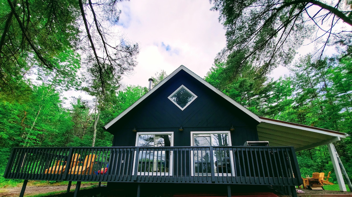 Bienvenue dans les magnifiques Catskills ! Notre magnifique chalet en forme de A est situé sur 6 acres de terres boisées privées avec une belle vue sur la nature. Venez séjourner à l'air frais ! Le chalet est entièrement approvisionné pour être apprécié en toutes saisons ! Détendez-vous sous le patio couvert par tous les temps (pluie ou neige) dans le JACUZZI ou détendez-vous sur la section extérieure tout en regardant NETFLIX/YOUTUBE TV toute l'année sur notre télévision EXTÉRIEURE, prenez une partie de PISCINE dans notre loft à l'étage ou faites une randonnée à travers notre SENTIER privé ! !