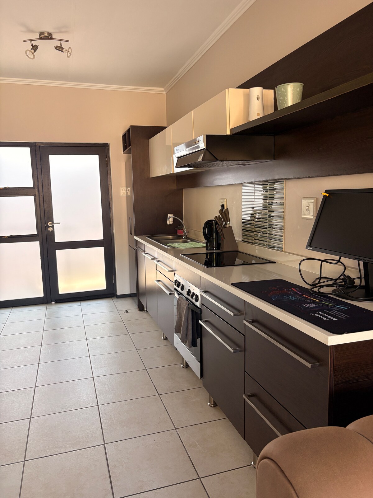 Situé à Brackenhurst, Alberton. Entrez dans un logement indépendant moderne et spacieux de 40 m². Cuisine entièrement équipée avec cuisinière, four, micro-ondes, réfrigérateur et lave-linge. Un salon ouvert avec un canapé confortable. Wi-Fi, télévision 32' avec Netflix. La chambre dispose de 2 lits simples et d'armoires encastrées. La salle de bain dispose d'une immense douche à l'italienne, d'un lavabo et de toilettes. Le stationnement se fait derrière un portail télécommandé avec suffisamment d'espace pour 2 voitures. Détendez-vous autour d'une piscine étincelante ou sirotez un verre sous le lapa.