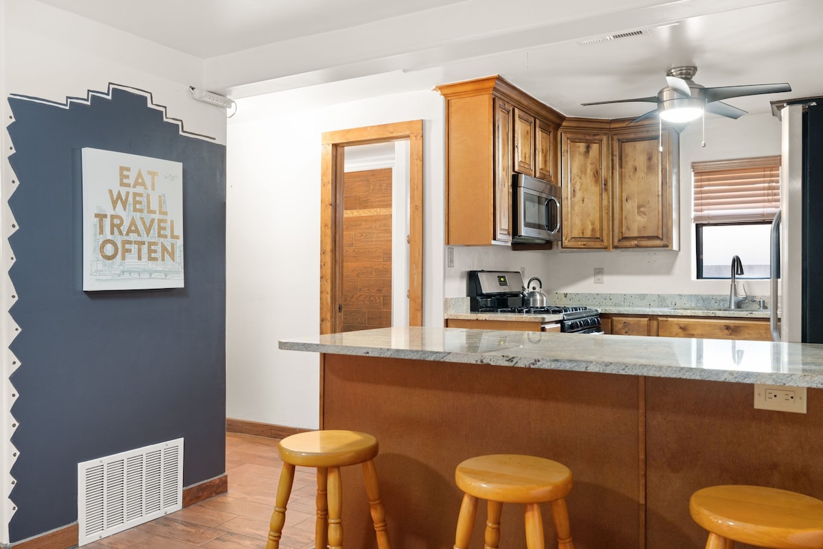 This modern southwest casita sits snuggly on our 1923 historic adobe property blending olde materials and modern amenities. Artist constructed; it brings a modern twist to your Albuquerque adventure. Casita is Spanish for little home, and this casita is entirely a home. Featuring full kitchen, King bed, a waterfall shower, private patio and pocket entryway doors that merge NM's beautiful outdoors with our cozy indoors. Permit:052140