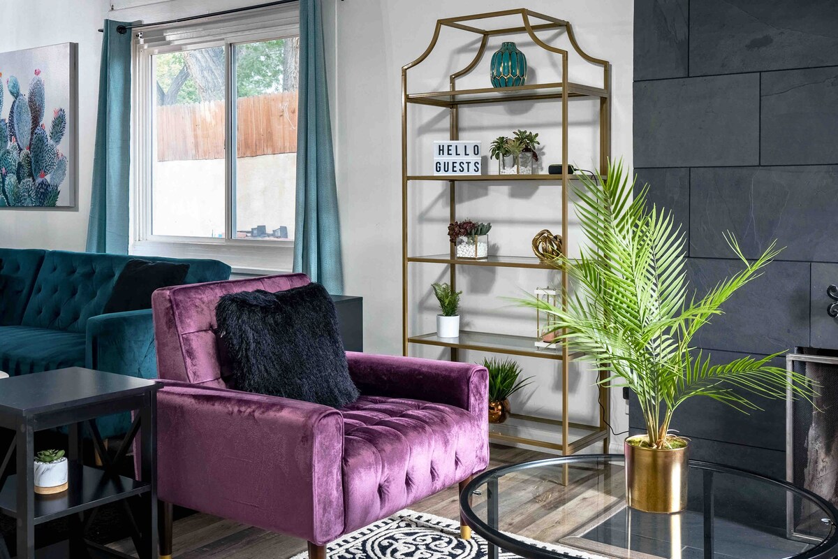 Venez tomber sous le charme du Nouveau-Mexique dans cette extraordinaire maison historique du centre-ville d'Albuquerque ! Construite en 1923, la J.J. Wegs House est inscrite au Registre national des lieux historiques comme un exemple frappant d'architecture de style mission. À l'intérieur, J.J. Wegs a été entièrement rénové avec un mobilier élégant et moderne, des lits et des appareils électroménagers neufs, mais présente toujours des touches anciennes partout : un véritable mélange du style unique du Nouveau-Mexique. Vous adorerez la grande cour arrière et la surprenante salle de jeux au sous-sol !