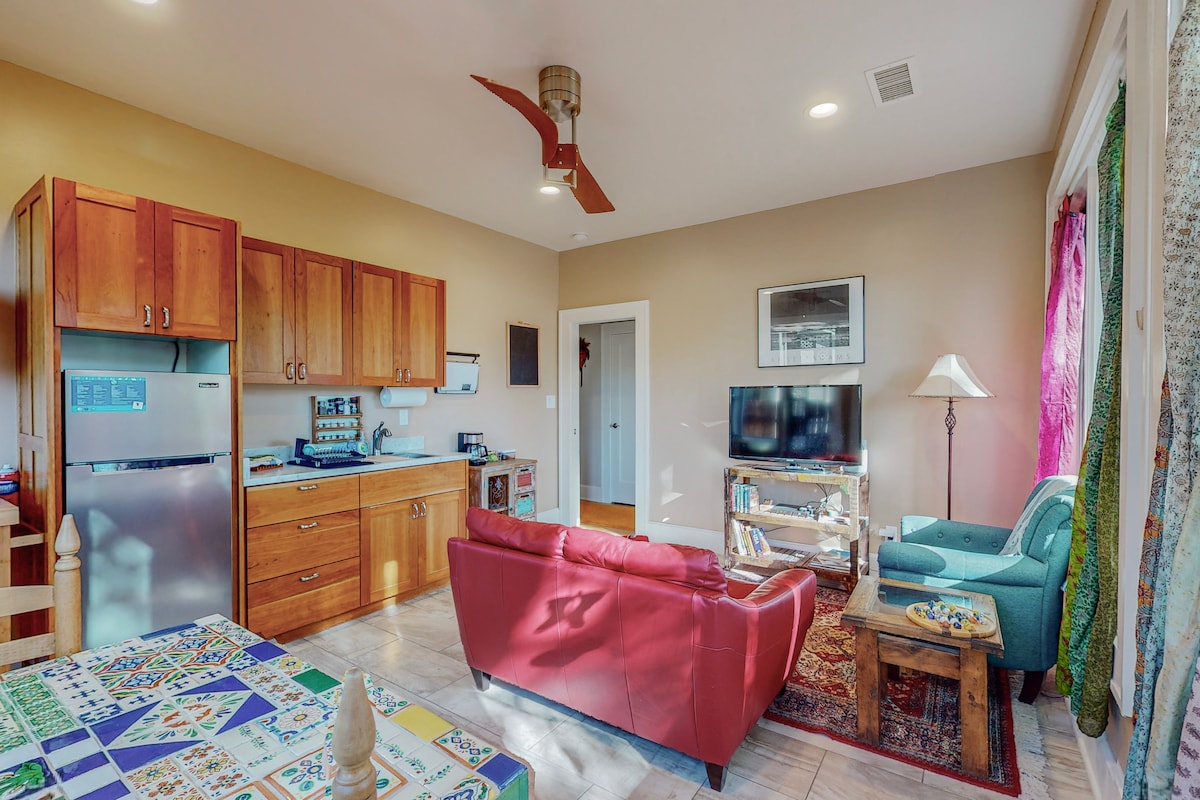 Petite maison confortable et accueillante avec une chambre et un loft, une entrée privée et une allée. Situé dans le quartier historique de Barelas à Albuquerque, à quelques pas du zoo et à quelques minutes en voiture ou à vélo de la vieille ville, de la rivière Rio Grande et de nombreux cafés et restaurants savoureux du centre-ville. Le studio est attenant à une plus grande propriété, mais dispose de sa propre petite cour arrière paisible qui est clôturée pour l'intimité des voyageurs. Le studio dispose d'un décor vintage et rétro avec un thème Albuquerque.