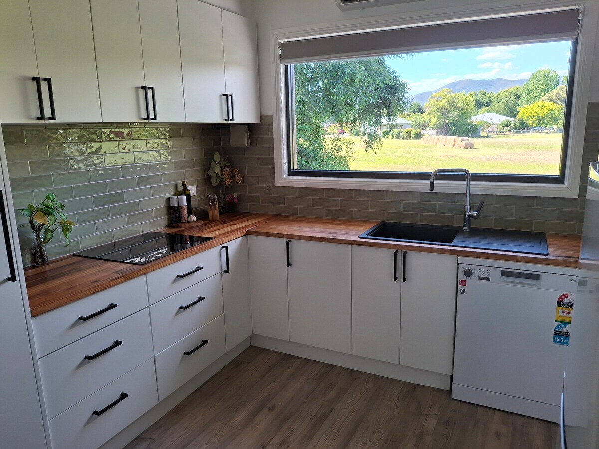 Leave the car in the driveway and enjoy this perfectly located residence. 400m from restaurants, supermarkets and licensed venues. Start your morning with a coffee whilst taking in the view of Mt Buffalo. Continue the day with a ride on the Rail Trail, walk up Reform Hill or the iconic Mosaic Trail along the Ovens River - all starting from your doorstep! Easy drive to King Valley, Beechworth, Bright, Mount Buffalo, Lake Buffalo, Mt Beauty and the snow fields.