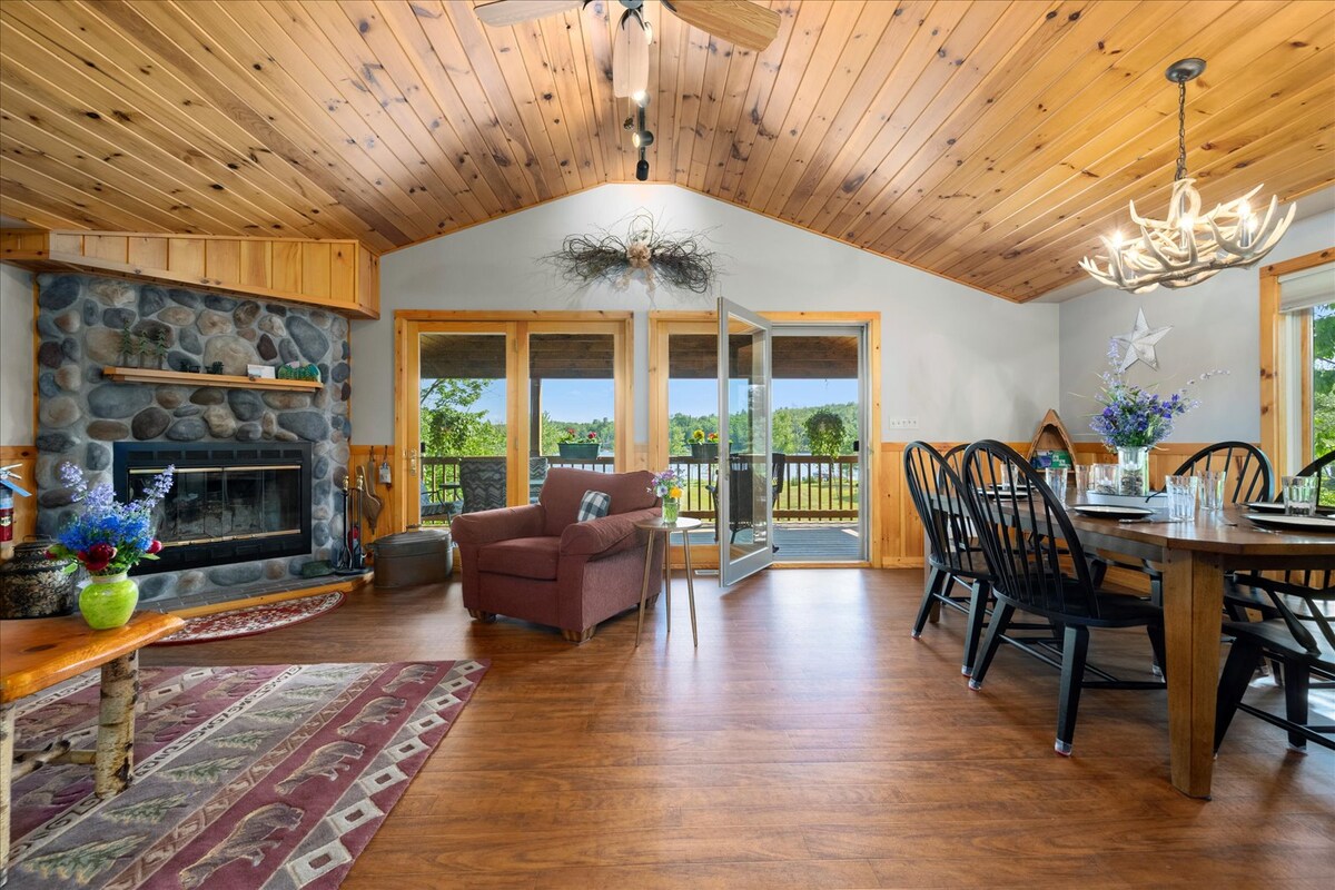 Accès facile à tout depuis cette maison située au centre. Profitez de loisirs tranquille avec de belles vues sur le lac mais à quelques minutes de la motoneige, de la raquette, du ski en hiver. Et toutes les grandes activités estivales. La maison est entièrement équipée avec deux lits king size, et une reine entièrement faite pour votre confort. La cuisine est entièrement fonctionnelle et s'ouvre sur un salon confortable avec un poêle à bois. Les terrasses en pin Knotty offrent une vue magnifique sur le lac et le ciel.