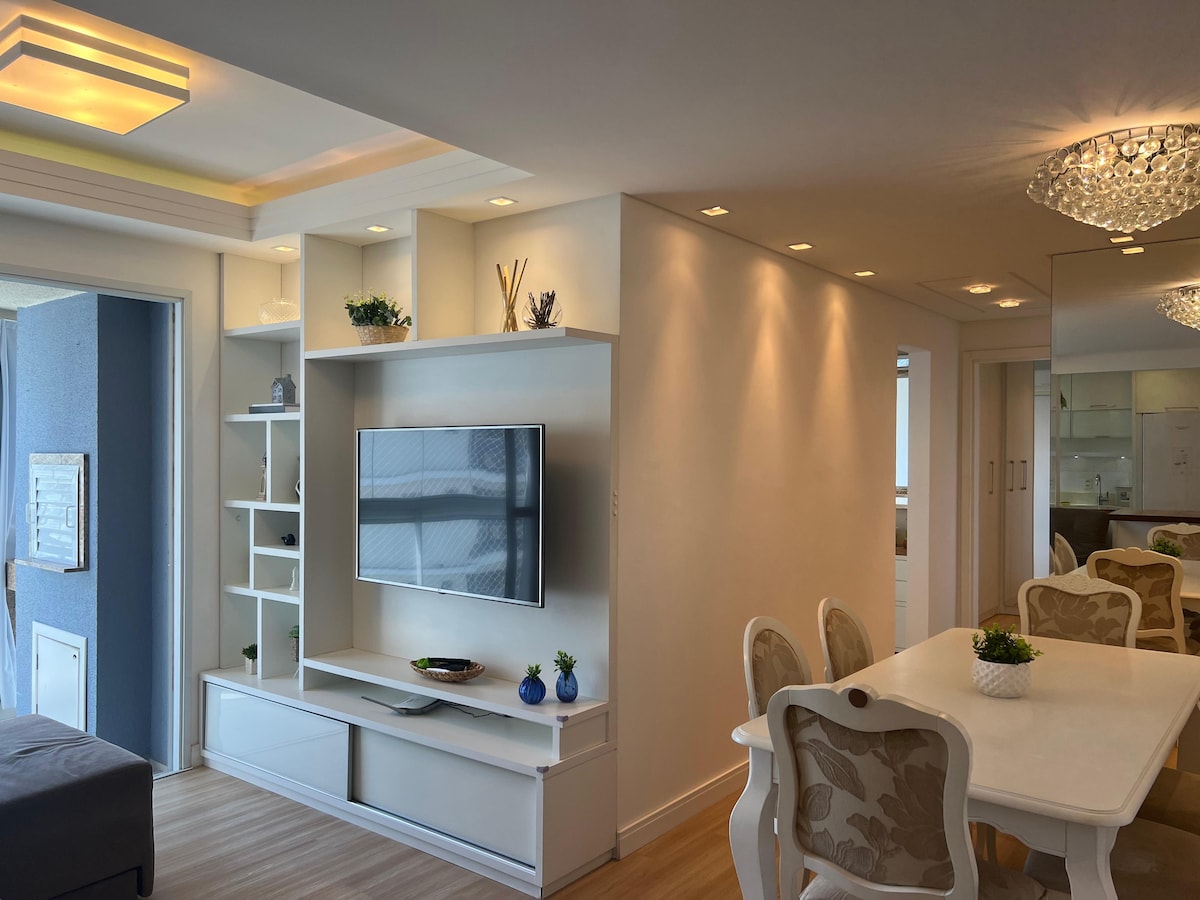 Appartement dans la copropriété Palladium, dans le centre de Penha, à proximité des boulangeries, du marché, de la pharmacie, des cafés et des restaurants. À 3 pâtés de maisons de la plage de Quilombo. Il est à 9 minutes du parc Beto Carrero. - 4 lits doubles. - Appartement avec tous les ustensiles de cuisine et électroménagers. - Netflix disponible sur la télévision du salon. - Barbecue avec grill sur le balcon. - Linge de lit inclus ! Posez vos questions, je suis disponible !