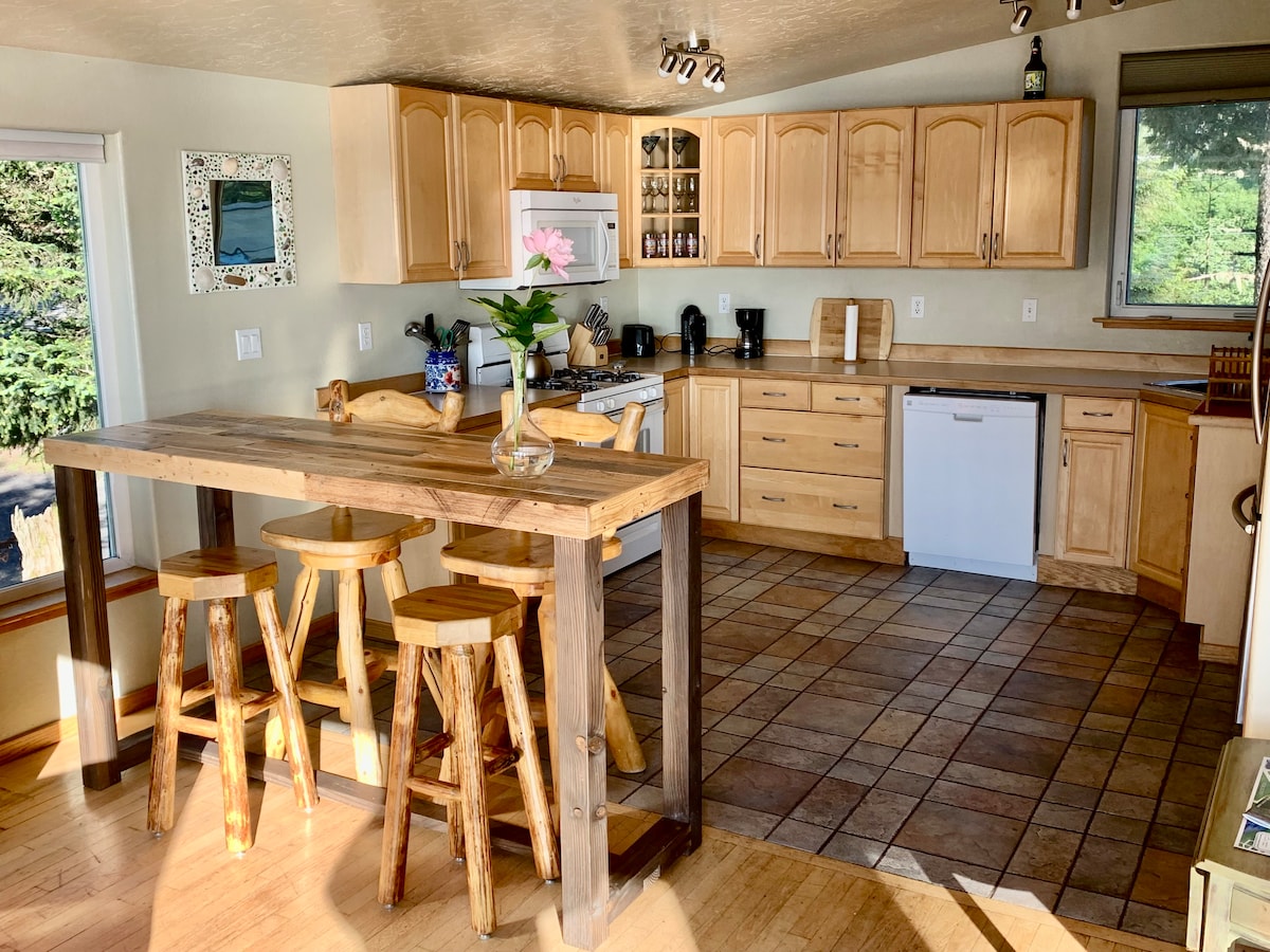 Si vous êtes à la recherche d'une vue imprenable sur le magnifique port de Kodiak, c'est l'endroit idéal pour vous ! À l'étage, un spacieux salon en mezzanine avec des plafonds voûtés offre les meilleures vues. Détendez-vous avec un café le matin et si vous avez de la chance, vous pourrez apercevoir un groupe d'orques nager à proximité. Ou passez du temps sur le pont lors d'une journée d'été ensoleillée à griller un repas fait maison. N'oubliez pas que vous devez être prêt à monter et descendre des escaliers pour accéder à la maison.