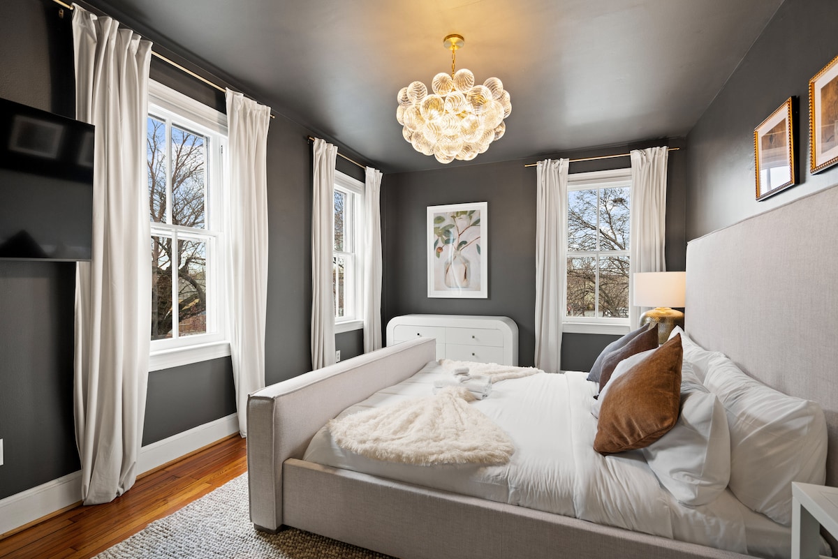 Profitez du meilleur de l'ancien et du nouveau ! Appartement séparé dans un American Foursquare de 1920 entièrement rénové situé dans le quartier éclectique de Del Ray à Alexandria, en Virginie, où « Main Street existe toujours ». Une rénovation de haut en bas offre aux voyageurs un hébergement de luxe dans une suite de niveau inférieur étincelante avec entrée séparée. Avec un stationnement gratuit dans la rue, parfait pour les affaires ou les vacances, les clients peuvent facilement marcher jusqu'aux restaurants, boutiques, cafés, bars et galeries de Mount Vernon Avenue.