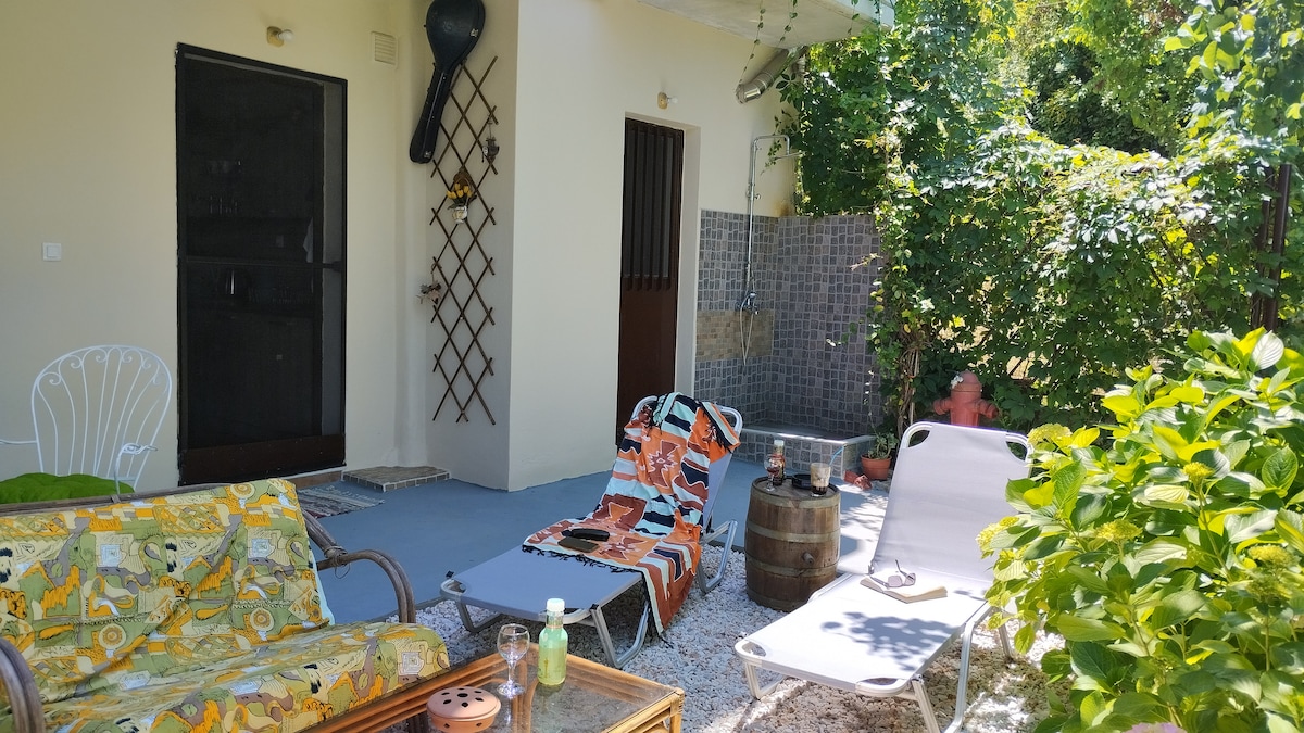 L'appartement est situé à seulement trois mètres au-dessus de la mer, dans la zone verdoyante de Kokkino Nero, sous la montagne de Kissavos. C'est un appartement de deux pièces avec un grand balcon à l'ombre d'un vieux platane. L'appartement est idéal pour les couples ou les petites familles qui ont soif de tranquillité et de détente. Venez profiter de la simplicité, de la tranquillité de la région, regarder le soleil se lever, sentir la brise marine et nager dans les eaux profondes de la mer ou faire de la randonnée dans les hautes montagnes !