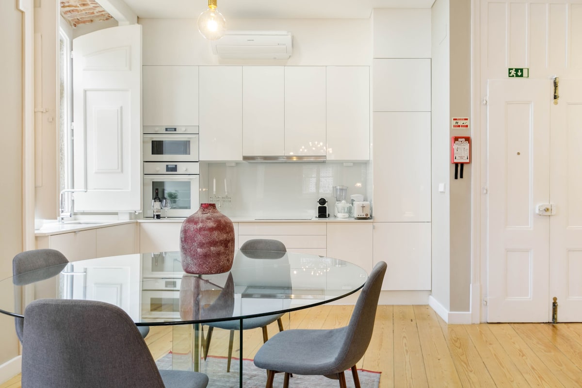 Notre appartement se trouve au cœur du centre-ville de Lisbonne - Baixa, dans un bâtiment du XVIIIe siècle entièrement reconstruit en 2016. L'appartement se trouve dans une zone très calme. Il est décoré de façon moderne avec une cuisine neuve et tous les accessoires neufs. Vous avez accès à tous les grands lieux historiques en quelques minutes à pied, et avez un accès à un parking, un supermarché, restaurants et boulangeries! Profitez de la vie à Lisbonne dans un appartement apaisant! :)