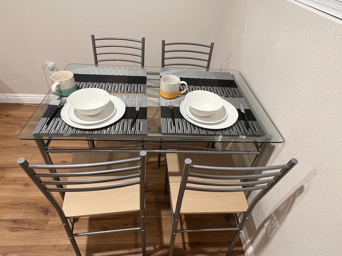 Logement de 2 chambres et 2 salles de bain pouvant accueillir 4 personnes. À distance de marche de 35 restaurants, cafés et bars. Cette maison est équipée d'un lit King size avec salle de bain attenante, d'un lit Queen size, d'un canapé-lit, de 3 Smart TV, de la climatisation centrale, d'une grande cuisine entièrement approvisionnée, de beaucoup de rangement, d'un bureau, d'un lave-linge et d'un sèche-linge privés, d'une connexion WiFi rapide, d'un parking gratuit, de sols durs, de tapis (Disney, Netflix, YouTube, chaînes Hulu ++) CUISINIÈRE À RIZ DANS LA CUISINE :) .